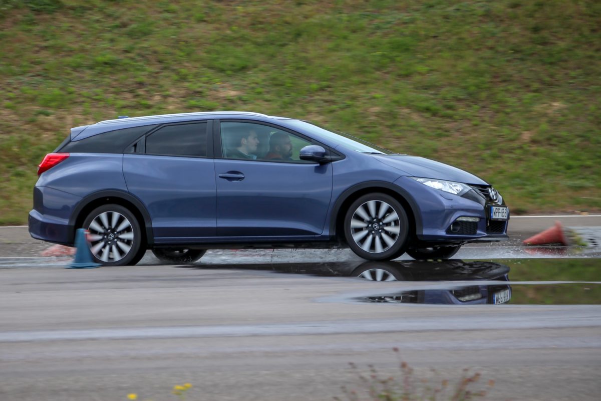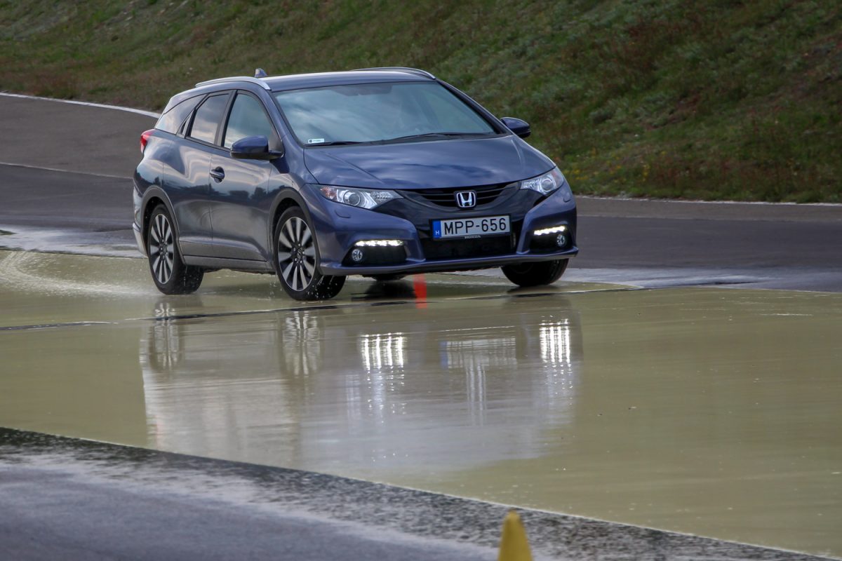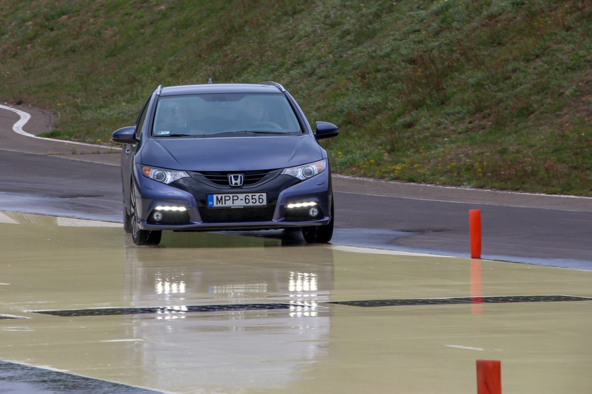 A fellocsolt pályán végzett szlalomon, terhelésváltásos kikerülési manővereknél a Renault kissé nyersebbnek mutatkozott a többieknél, menetstabilizálója leheletnyivel később avatkozott közbe. A legprecízebb a Honda, mindhárom nagyon biztonságos