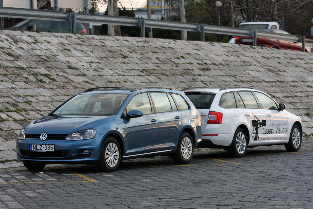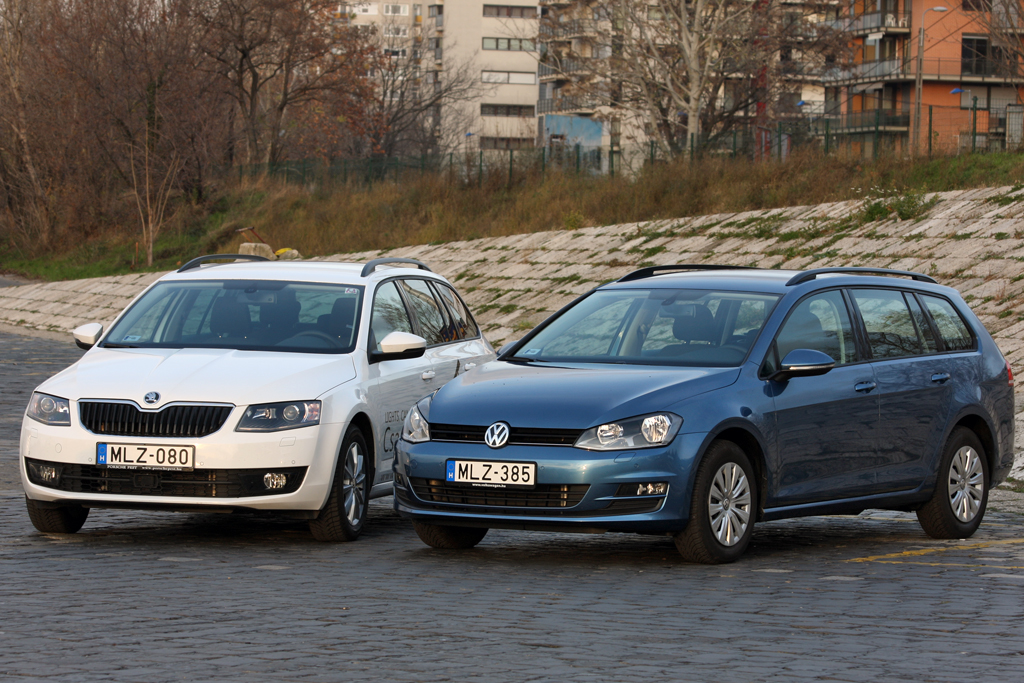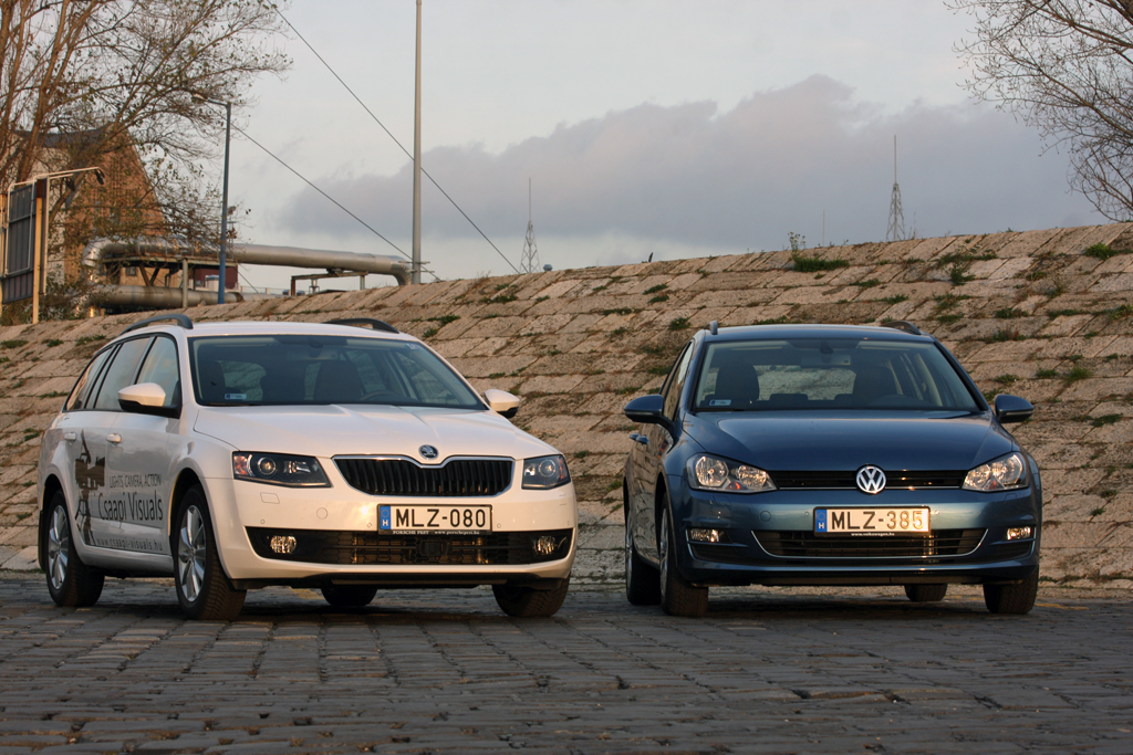 Összehasonlításunk győztese a 2013-as Év Autójának, a VW Golfnak a kombijával szemben a 2014-es Év Autója-jelölt Skoda Octavia Combija, mert van olyan jó a cseh remek is, hogy ne akarjuk megfizetni az etalonságot, az echte németséget. És mert a kolléga elfogult. És mert az Octaviát 1.4 TSI-ként teszteltük, s az 1.4 TSI szimpatikusabb az 1.6 CR TDI-nél. A gyári ígéret és a tapasztalat szerint is uszkve 1,5 literes fogyasztáskülönbség minket legalábbis nem vett meg.