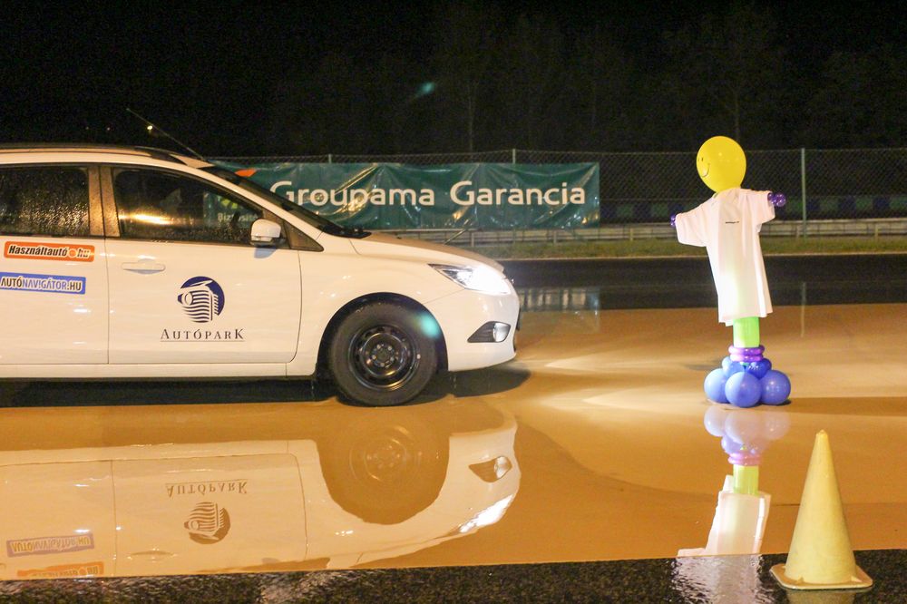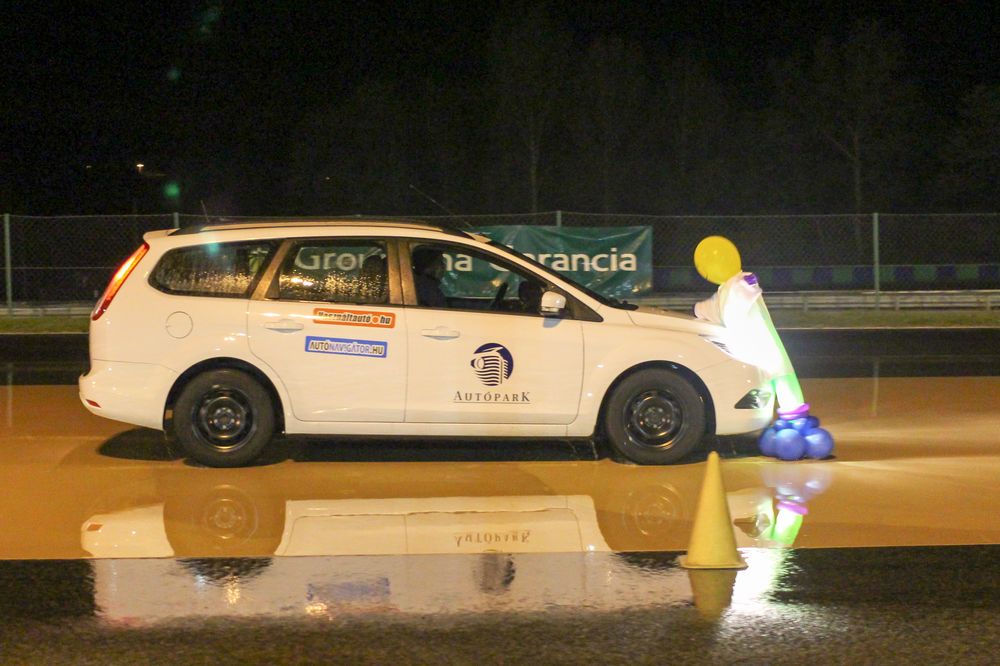 - Fékút 40 km/óráról nedves műgyantán (a jéghez hasonló tapadású felületen) a Tanpályán