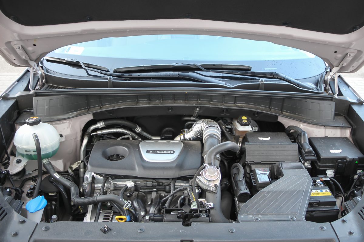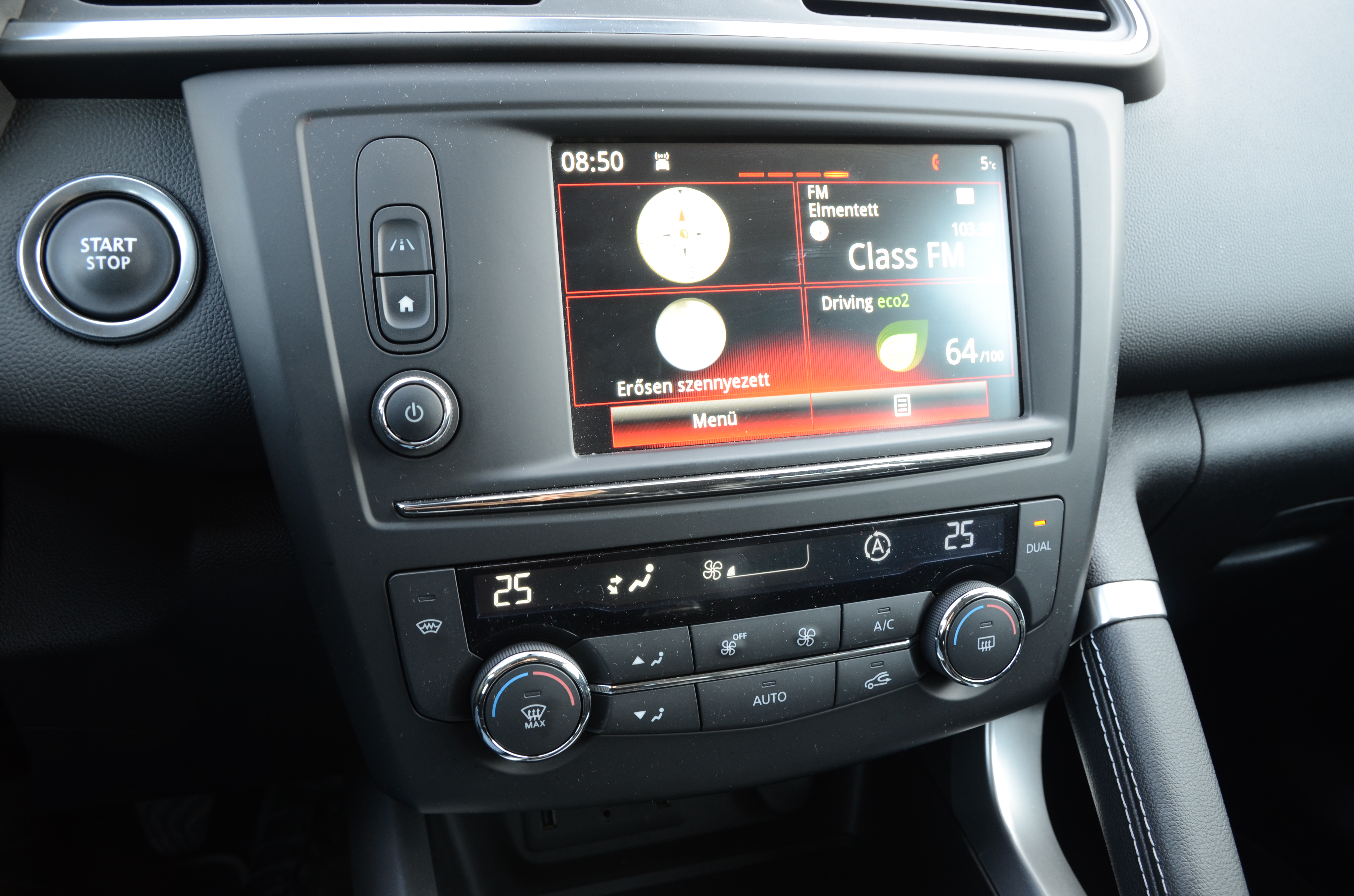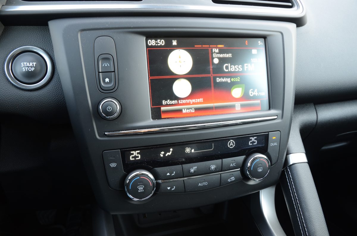 Induljunk el! Fővárosi utakon bizony már az első néhány száz méter után érezni, hogy kicsit eltúlozták a 19 colos felniket a Kadjaron. Lehet, hogy szép, sőt valóban szép, és jól is mutat rajta, de a komfortot jelentősen lerontja. Érezhetően nem csak a nagy kerék itt a ludas, a futómű sincs a helyzet magaslatán. Kicsit hasonló érzésem volt, mint a nyáron tesztelt Espace kapcsán, ami rossz úton kanyarban szinte észrevétlenül táncolt odébb oldalirányban. Van még mit faragni tehát ilyen téren, akárcsak a kormányzáson. Olyan semmilyennek érződik, ha tekerem fordul az autó, de semmi extra. A visszatérítő erő kis elfordításnál nem működik, lényegében úgy marad, és lassan oldalazunk jobbra vagy balra, ha kézzel nem rakom egyenesbe. A váltó pontosan jár, de elég hosszú úton, és a kapcsolások során is érezni, hogy ez sem egy minőségi szerkezet. Érdekes, a dízel Kadjarban sokkal jobb volt minden, a benzinesen van még mit faragni. Ehhez képest a Tucson minden szempontból jobb eredményt hoz. A futóműve sokkal kulturáltabb, akárcsak a kormányzása. A váltó hétfokozatú duplakuplungos, ami tökéletesen teszi a dolgát. Irányítani egyértelműen nagyobb élmény a Tucsont, aki szeret vezetni, annak a koreaiak újdonsága lesz a befutó. Akit kevésbé izgat a vezetési élmény, csupán az A-ból B-be való eljutás, és a franciás dizájn nyűgözi le, az válassza nyugodtan a Kadjart.