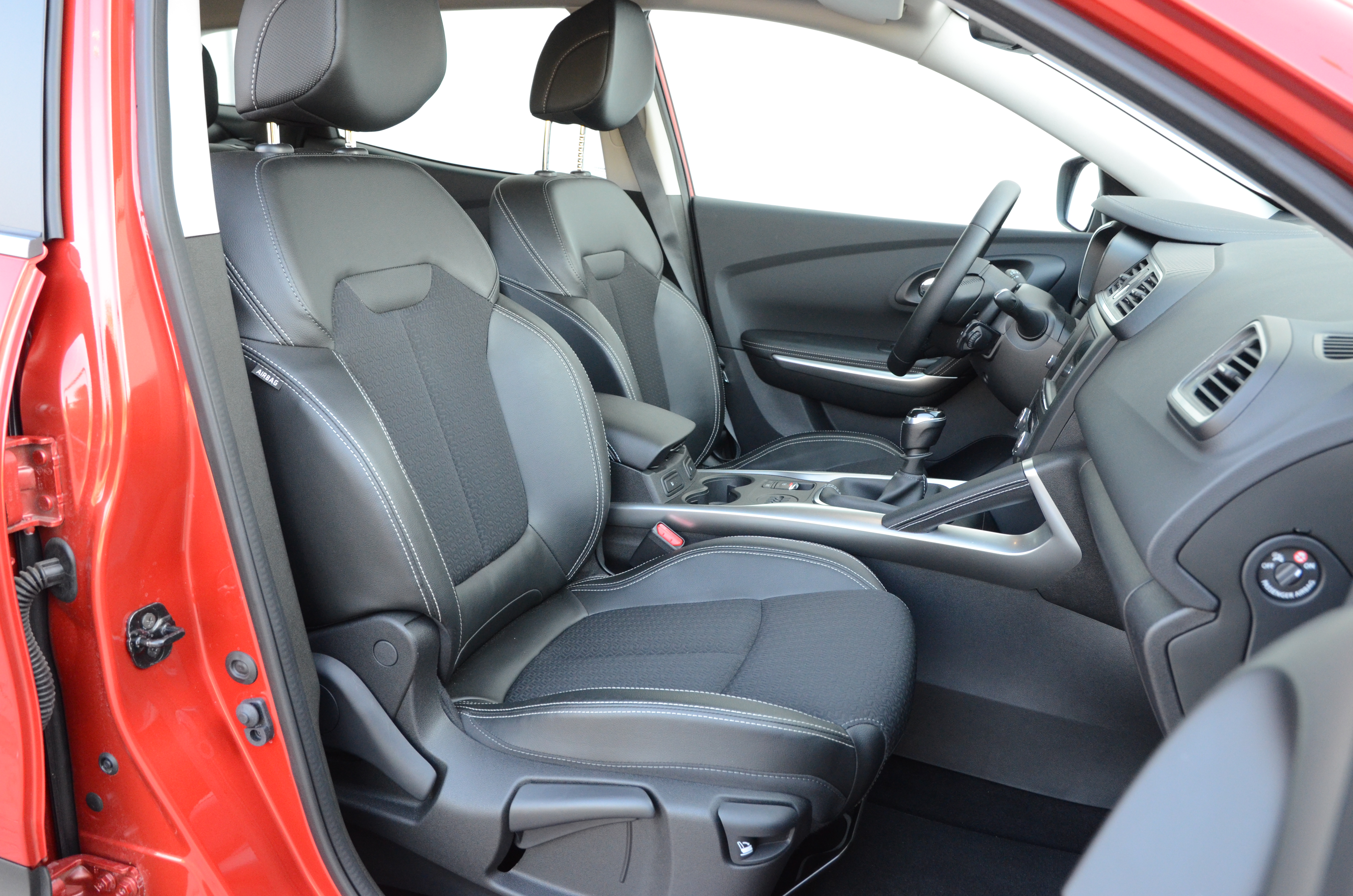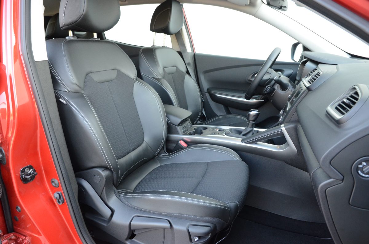 A Renault ülései fotelesebb kinézetűek, a valóságban pedig kényelmesek is. Annak ellenére, hogy ő a visszafogottabb autó, a bőr/szövet sportosságot sugall