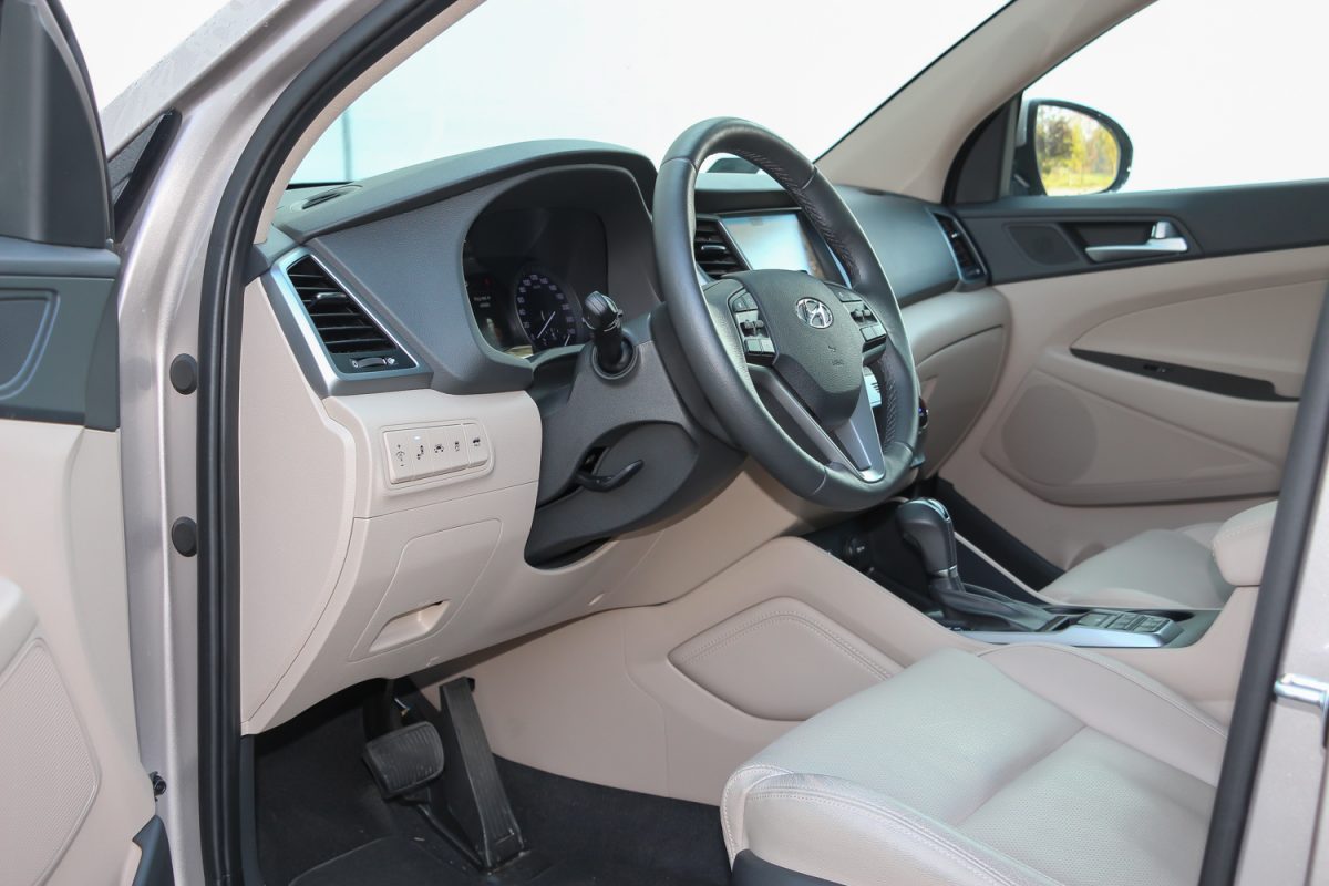 A belső tér mindkét autónál kellemes, a Tucson kétszínű műszerfala talán kevésbé harmonikus, a központi kijelző viszont méretű, mint a Kadjarban