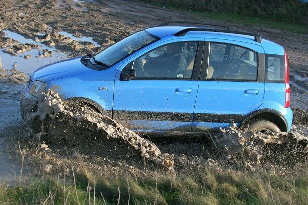 Ez már túlzás a viszko kuplungos összkerékhajtású Fiat Pandának, de a kisautó magabiztosan mozog havas, saras úton is