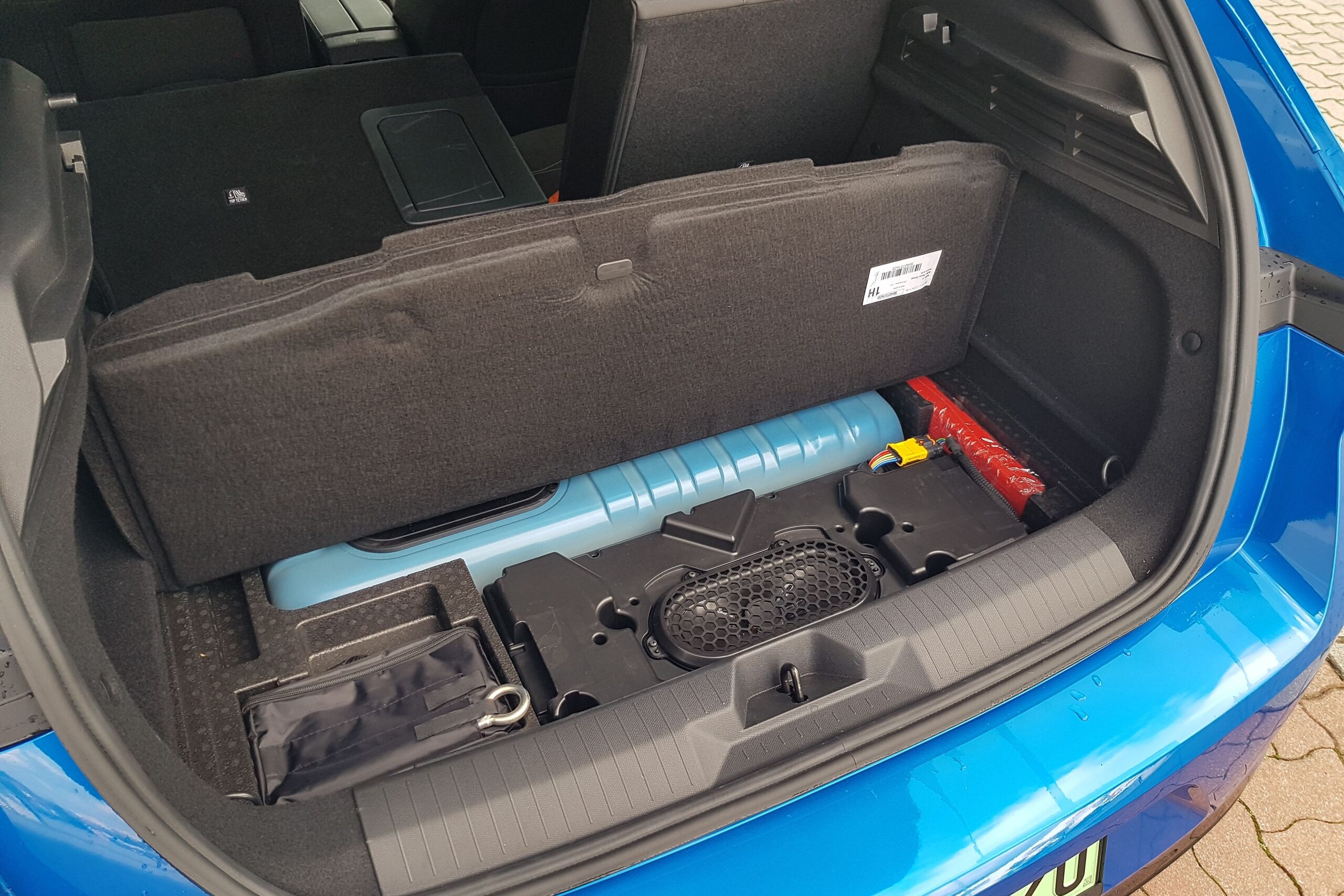 Talán kicsit zavaróbb, hogy a villanyhajtás oltárán fel kellett áldozni jó pár litert a csomagtérből. A PHEV ugyanis alapból 352 literes csomagteret nyújt a többiek 422 literjével szemben. Jó persze, ez nem katasztrofális differencia, így is 1268 literesre bővíthető a 60/40 arányban osztva dönthető hátsó üléseknek hála. Amelyeken alapállapotban szintén kényelmes helyet foglalni, és a lábtérre sem lehet panasz ott. Ugyanakkor nincs külön rekesz a kábeleknek a csomagtérben, ami ismét fekete pont, de majd pirosra váltja a hajtáslánc, illetve maga a vezetési élmény.