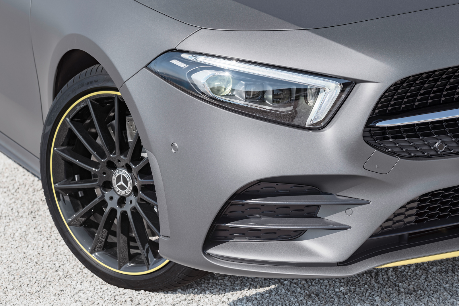 A külső dizájn jóval vadabb, mint az elődé, és nagyon hasonlít a nemrég bemutatott új CLS típusra. A határozottan felfelé ívelő motorháztető, illetve az éles vonalakkal operáló Multibeam LED fényszórók határozottan más karakterrel ruházzák fel az előző generációhoz képest. Hátul szintén felfedezhető némi hasonlóság a CLS-sel - annak ellenére, hogy az A-osztály ferdehátú karosszériával indul az autóvásárlók meghódítására. És természetesen a prémium kompakt kategóriában, olyan ellenfelek ellen, mint az Audi A3, valamint a BMW 1-es sorozat.