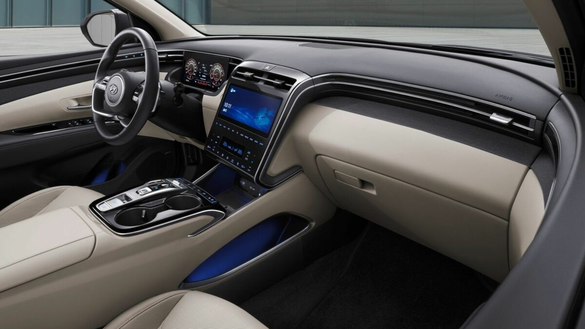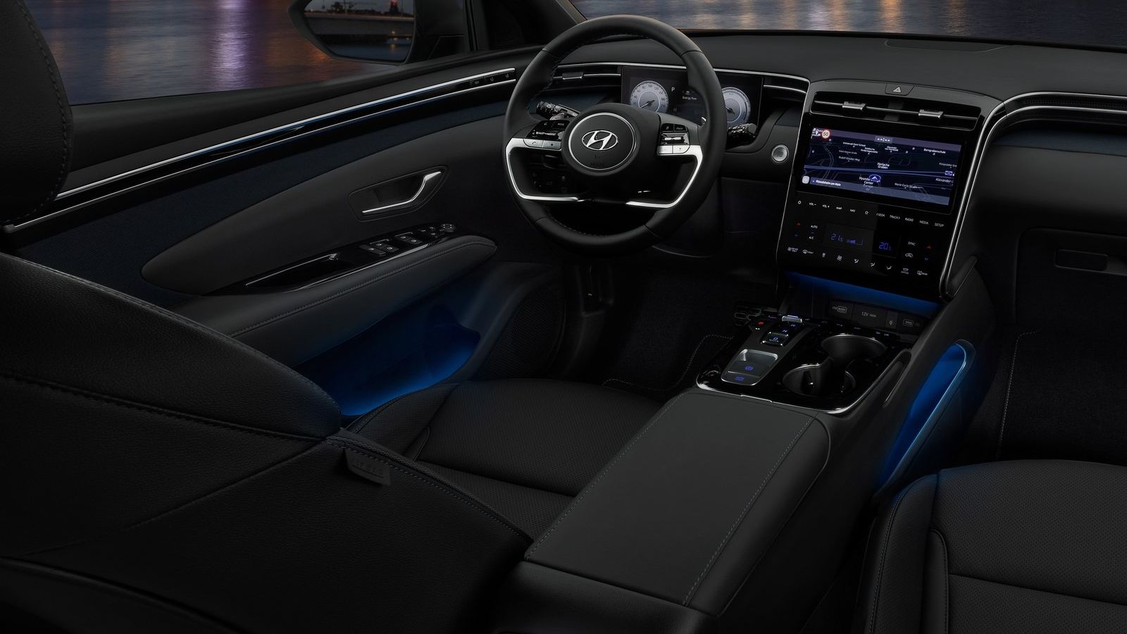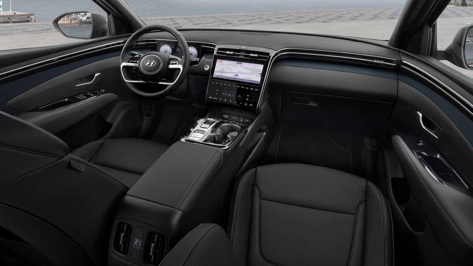 Amennyire vad a külső, olyannyira finom a belső. Mondhatni, hogy mercedeses stílusban, ám nem egybeépítve egy-egy 10,25 colos panelből áll a műszerblokk és a középkonzol infotainment panelje. Utóbbit szépen integrálták az amúgy is kecses vonalú műszerfalba. A Tucson azzal is első, hogy egyetlen fizikai gombot sem hord középen, mindent, a légkondi beállításait is érintőgombokkal vezérelhetünk. Hogy ez mennyire lesz kényelmes, majd kiderül, az viszont biztos, hogy az akár háromzónás légkondicionáló olyan finomságokat is tud, mint a diffúz, észrevétlen légáramoltatás, meg persze kapunk okostelefon-tükrözést (Android Auto és Google CarPlay), mobilalkalmazást egyes járműfunkciókkal és a sofőr telefonjára átadott "utolsó útszakaszos" (last mile) navigációt.