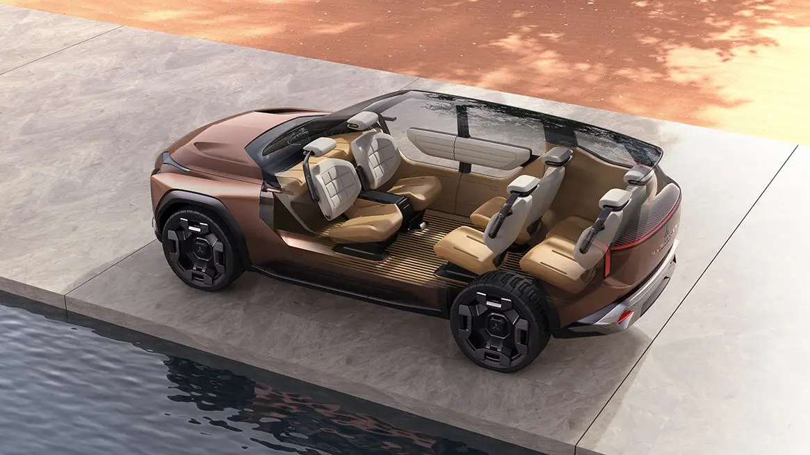 Az utastér ennél is rendhagyóbb megoldást kapott. A hatüléses SUV-ban az első sor foteljei menetiránnyal szemben helyezkednek el. A visszafelé nyíló hátsó ajtók szinte biztosan nem fognak sorozatgyártásba kerülni, ez a megoldás a tanulmányautókon közkedvelt megoldás, mivel a B-oszlop elhagyásával könnyebben prezentálható az utastér.