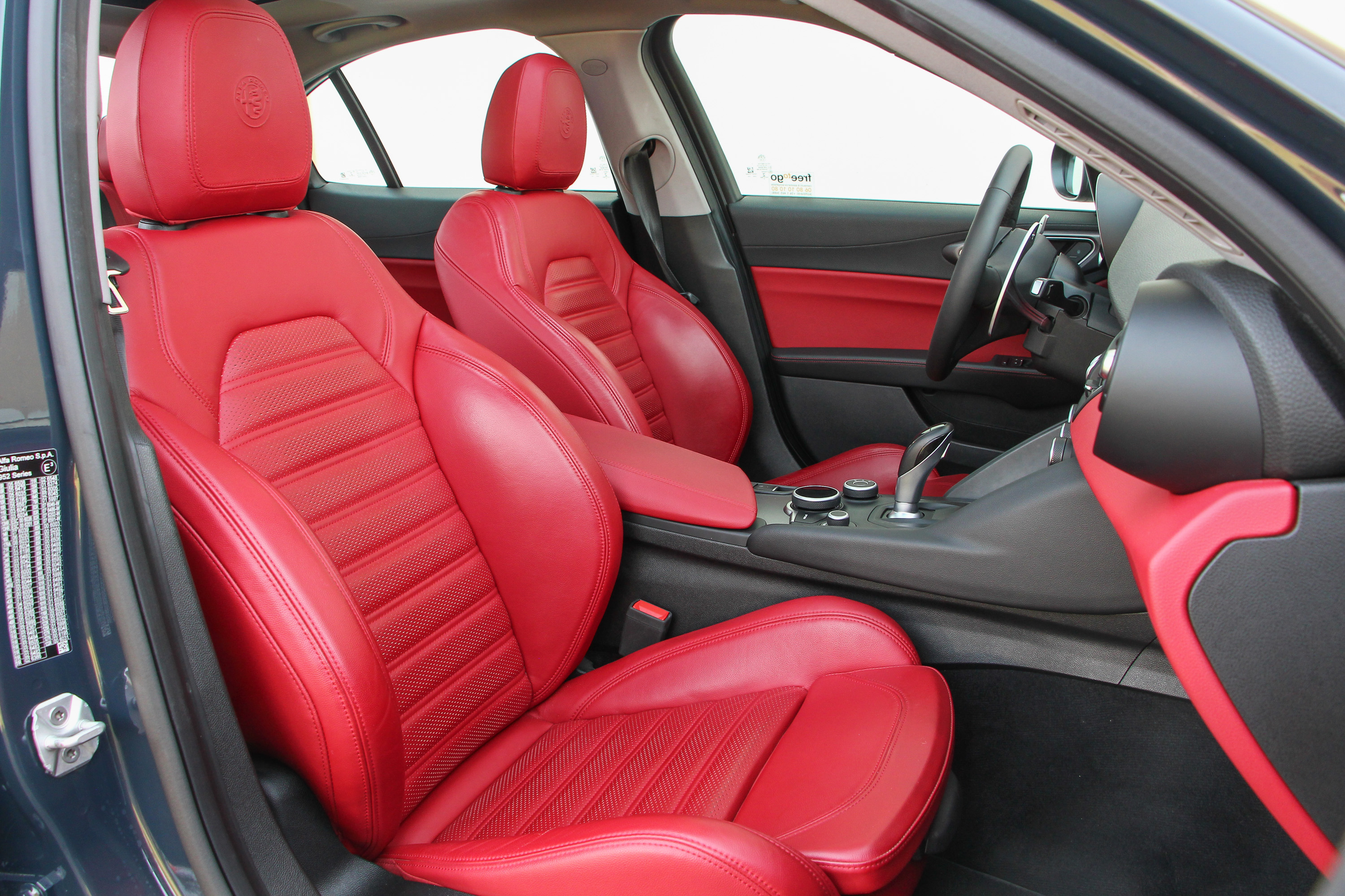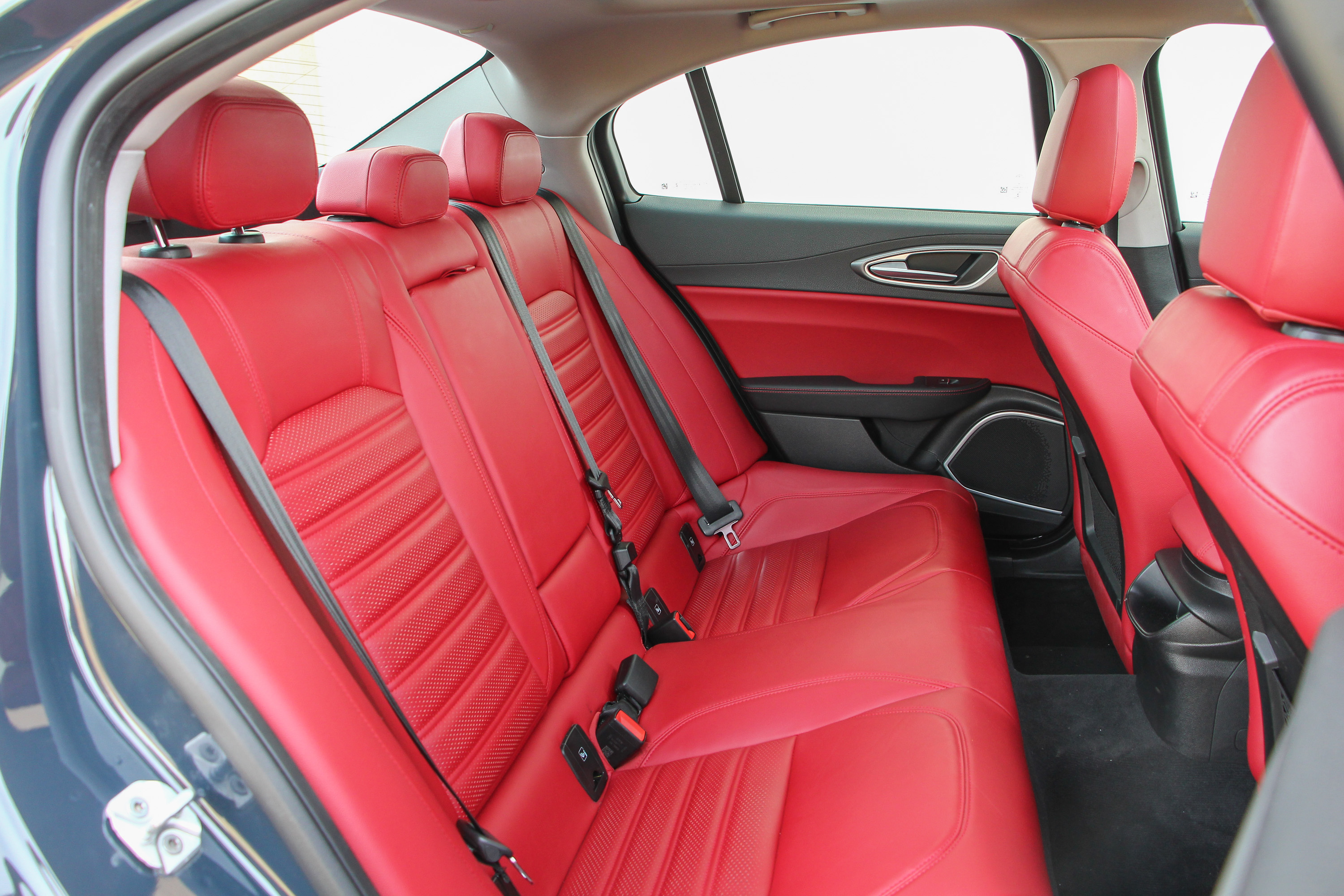 Nem olyan tágas a Giulia, mint az Opel, de azért az sem szűkös. A beltéri hangulat ötcsillagos