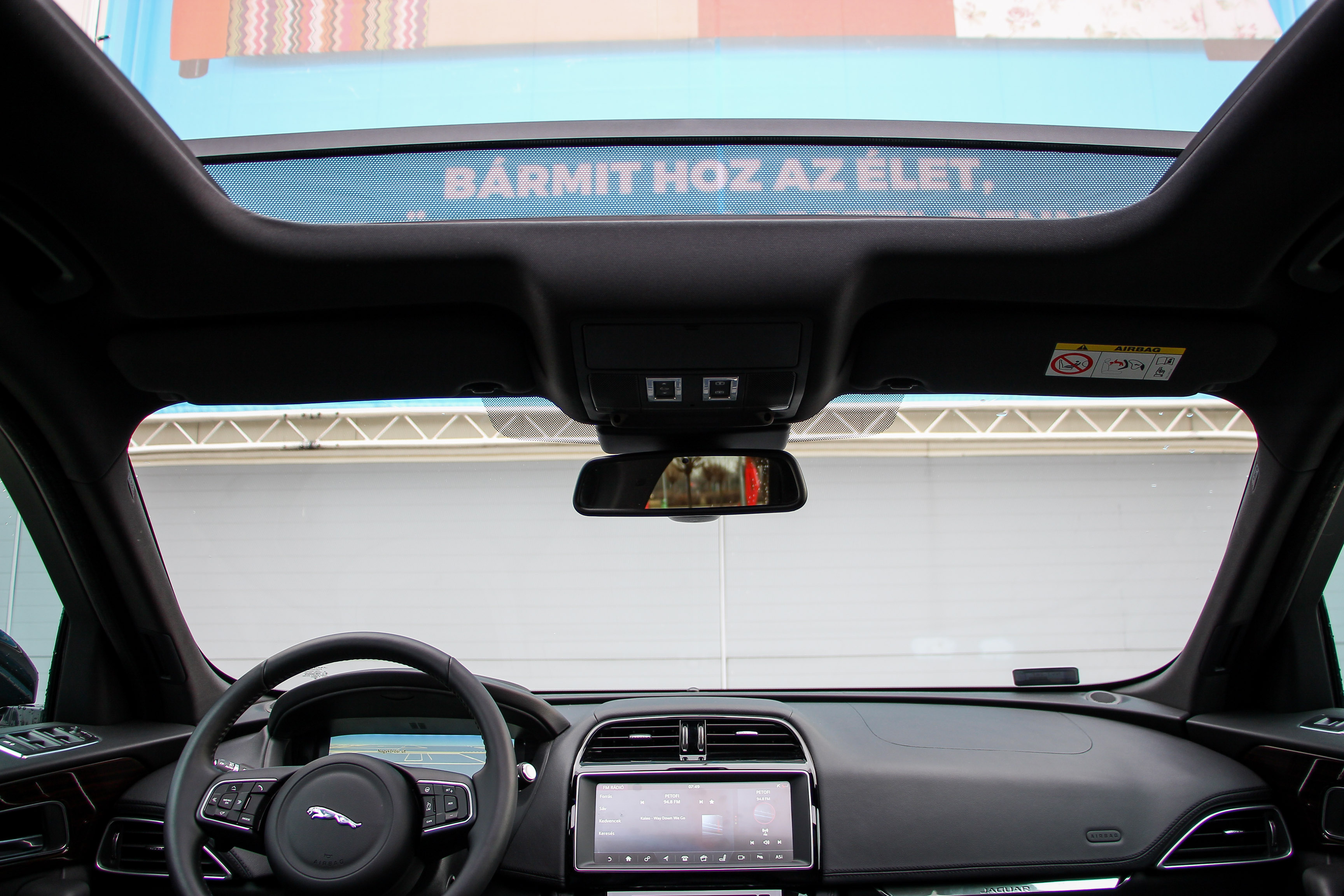 Jól sikerült a saját dízel. A Tata fennhatósága alatt kezdte el saját motorjait fejlesztgetni a Jaguar - Land Rover, a kétliteres Ingenium dízel csupán négyhengeres, de ezt már a prémium ligában játszó márkáknak is el kell néznünk. Főleg, ha olyan hatékony egységeket csinálnak, mint ez itt. Örültem, hogy nem a V6-os tesztautót kaptunk, ebben a felállásban némileg józanabb az összkép. A kétliteres dízel jó választás lehet, 180 lóerős ugyan, de 430 Nm nyomatékú, amit nagyjából 1700-1800-as fordulatszám környékén kezd el leadni, onnantól meggyőzően mozgatja a Jaguart. Városban 8,5 liter az átlag, vegyesben tudta a katalógus 5 liter körüli értékét is, igaz este, nulla forgalomban, de ez akkor is jó pont egy ekkora autónál. Alul picit hangos, a 8 fokozatú ZF váltó szeret visszakapcsolni alacsony sebességnél, hogy legyen tartalék, ami kell is, így az elindulás, vagy az araszolás annyira nem elegáns, magasabb fordulaton viszont szinte elvész a hangja, nem tűnik dízelnek, egész jó karakter. Sportban a gázreakció is rettentő gyors tud lenni, és akár tudunk is sportosan közlekedni vele, mert a futómű is remek társ hozzá, de ezekhez a hegyomlásokhoz nekem sosem passzolt az efféle közlekedés.
