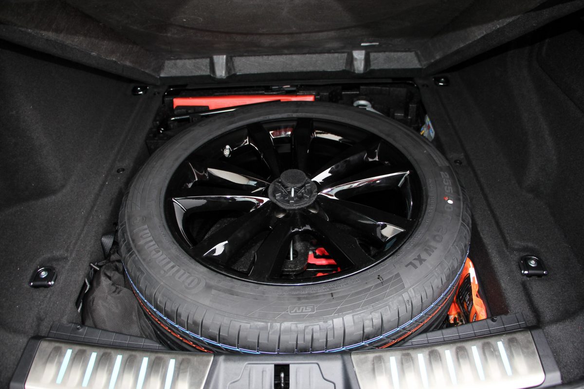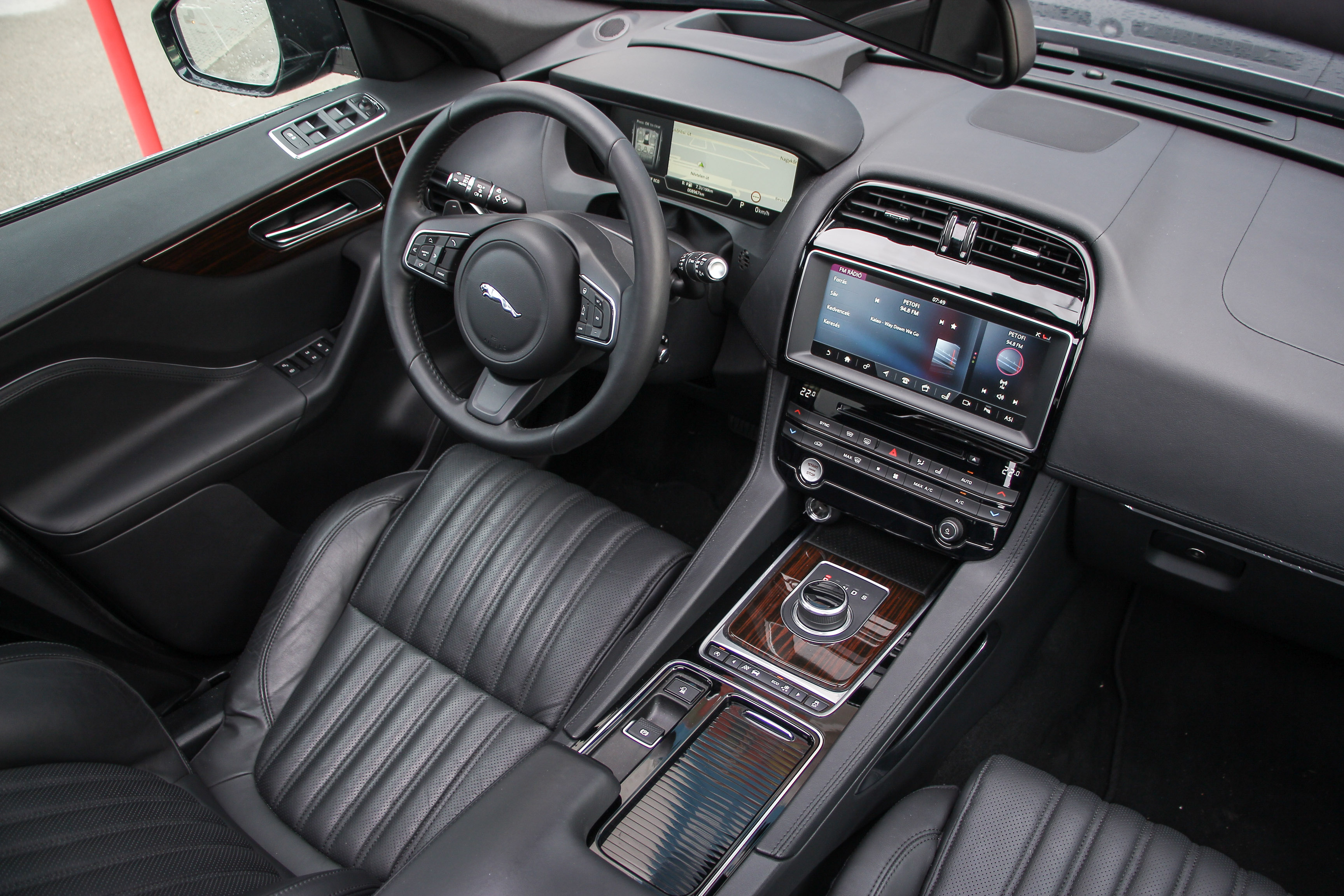 20 colos teljes értékű pótkerék, minimum kétemberes meló kivenni, a küszöb világítása viszont csillagos ötös. A saját fejlesztésű kétliteres dízel nyomatékos, néha picit hangos, de jól viszi az F-Pace-t