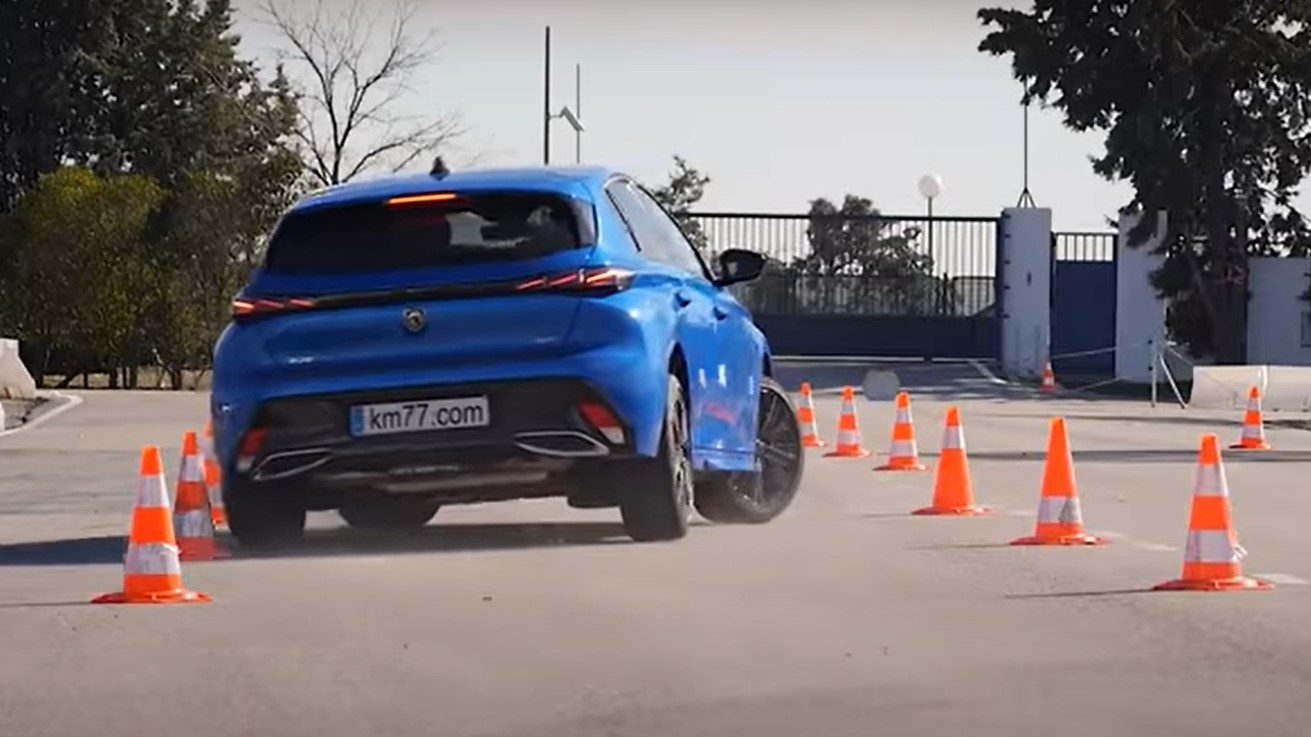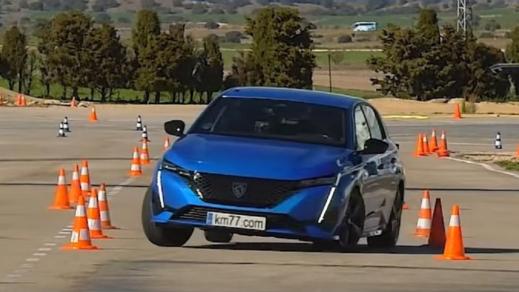Íme a Peugeot 308 a meglepően nagy hullámokat keltő teszten (Fotó: Youtube.com/km77.com)