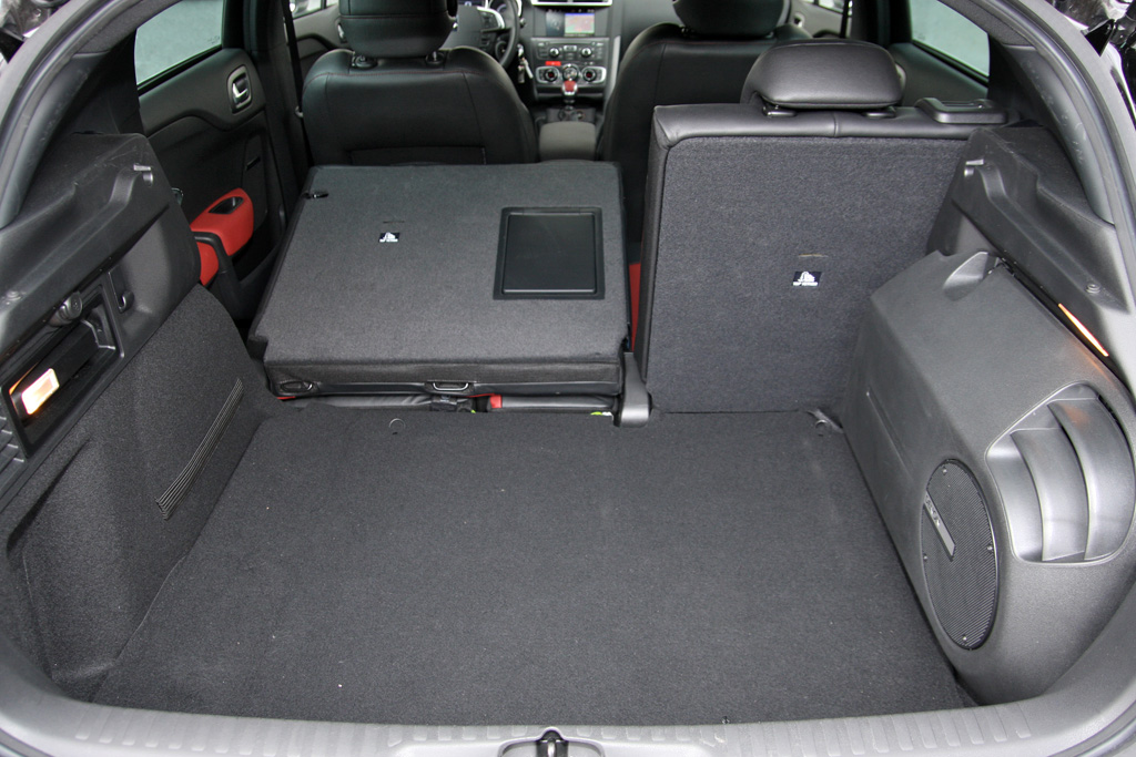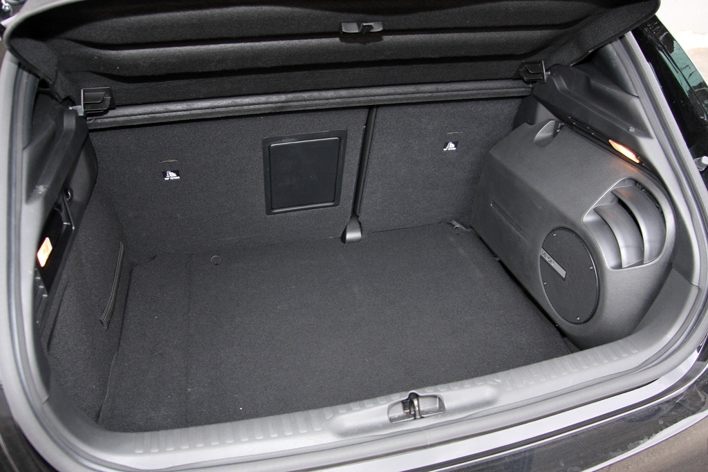 Magas peremen át pakolható, nem túl öblös, üléshajtás után lépcsős a csomagtartó, ezzel együtt mégis használható méretű, illetve síboxot, zseblámpát, 12 V-os aljzatot is ad