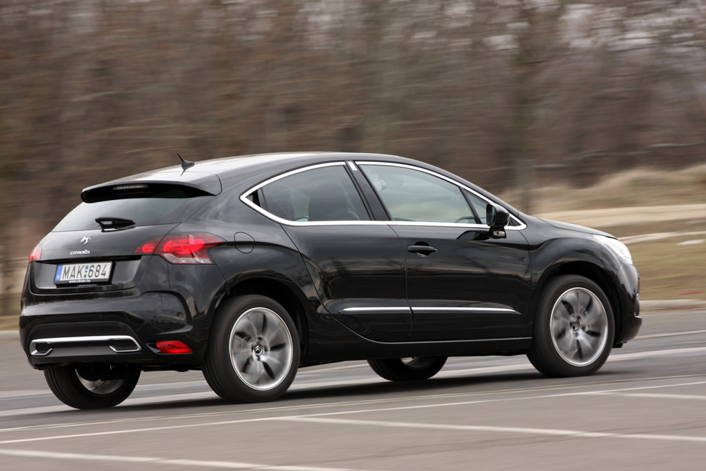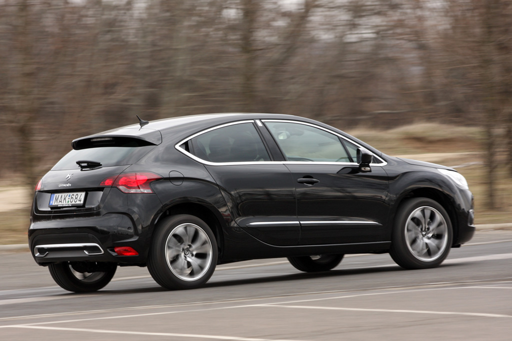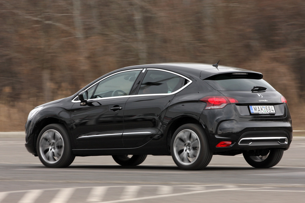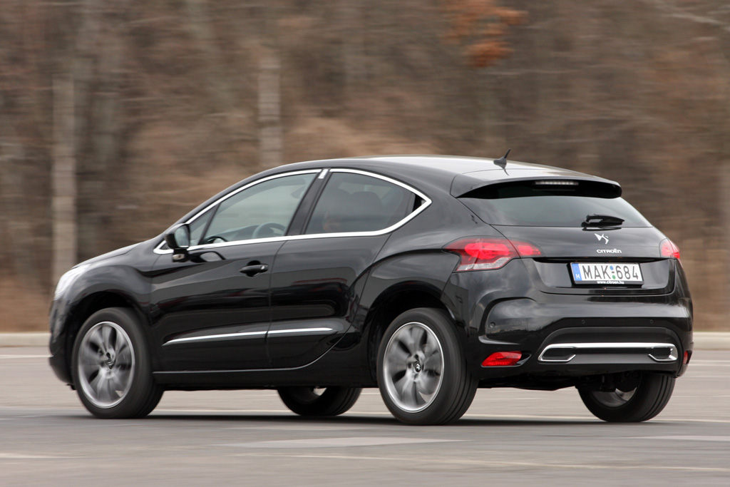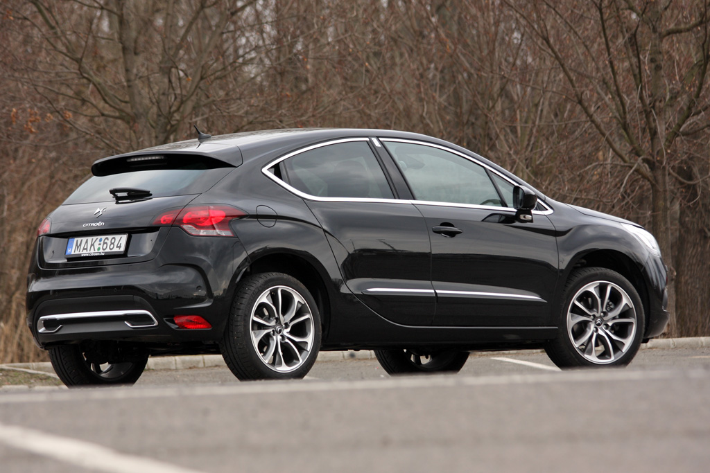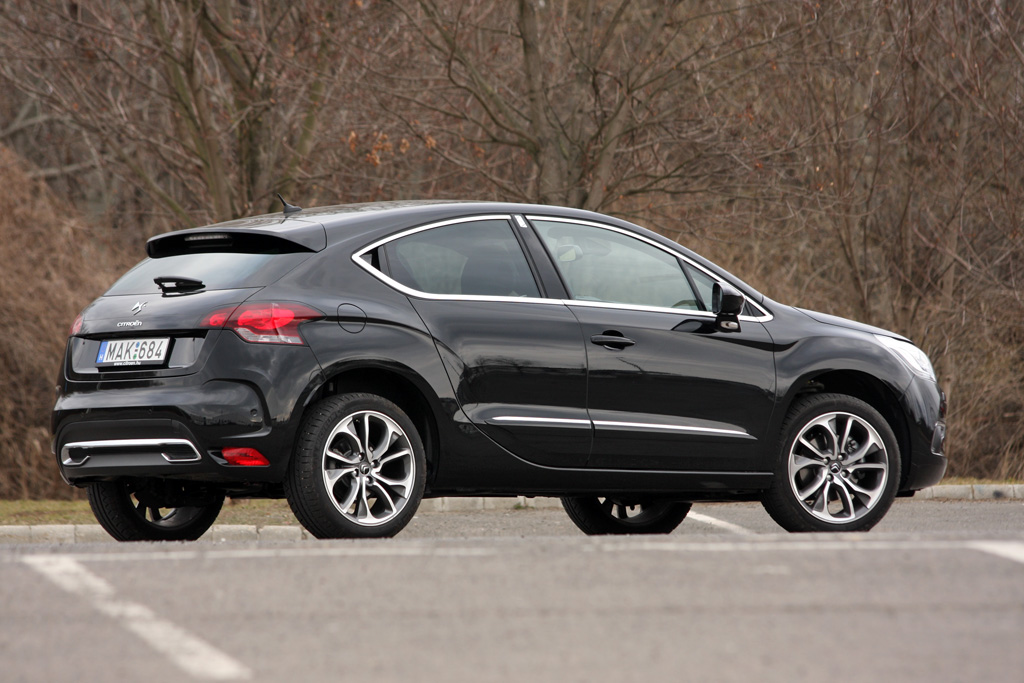 Elég nagynak mutatja magát, pedig nem is olyan nagy a DS4, hiszen nem más, mint a kompakt ferdehátú C4 csöppet emelt hasmagasságú változata. A Citroën szerint crossoveres, sőt kupés is a tetővonalával és a rejtett hátsó kilinccsel - sok krómmal, 18 colos kerékkel mindenesetre igen hivalkodó jelenség