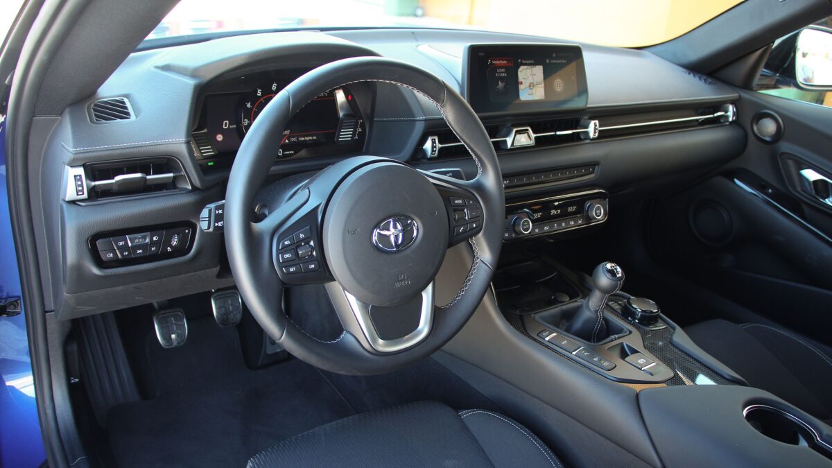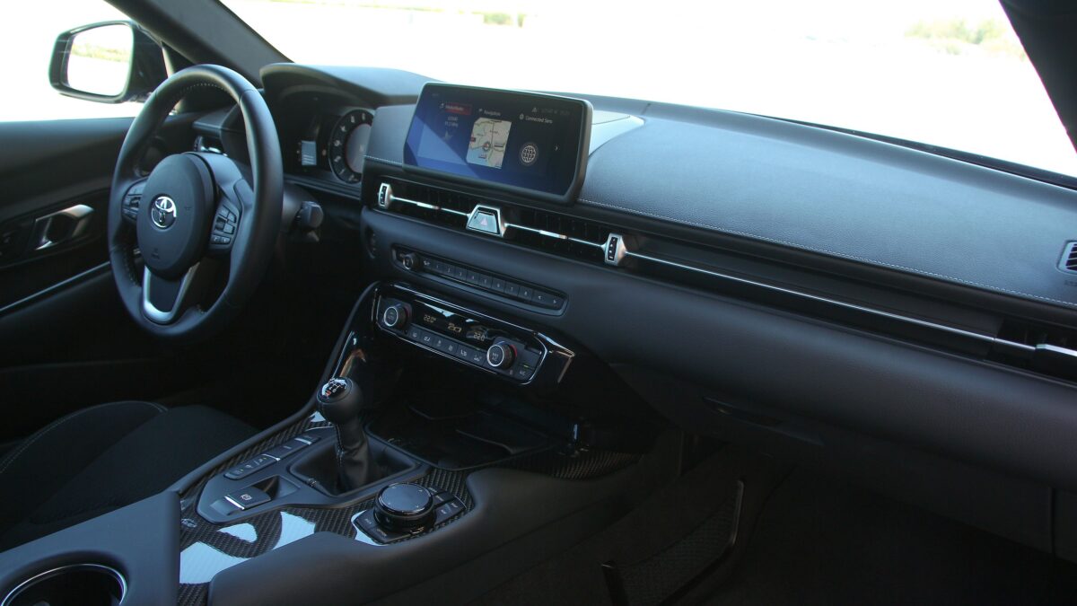 A kipörgésgátlót is a manuális váltóhoz hangolták. Sőt, megjelent egy úgynevezett „hajtűkanyar-segéd” is, ami a nyomatékszabályozással játszik, az emelkedőkön található szűk kanyarokban, amelyek oly jellemzőek Európa hegyi útjain. Mivel egy spanyolországi versenypályán próbálhattuk ki a kéziváltós Suprát, így ebből az új megoldásból nem sokat tapasztalhattunk meg, viszont az tény, hogy valóban dolgosabb, ám egyben élvezetesebb így vezetni a Toyota sportautóját. A hatfokozatú váltó rendelkezik egy olyan funkcióval is, ami a Sport gomb megnyomásával jön elő. Méghozzá apró gázfröccsök formájában visszaváltáskor.