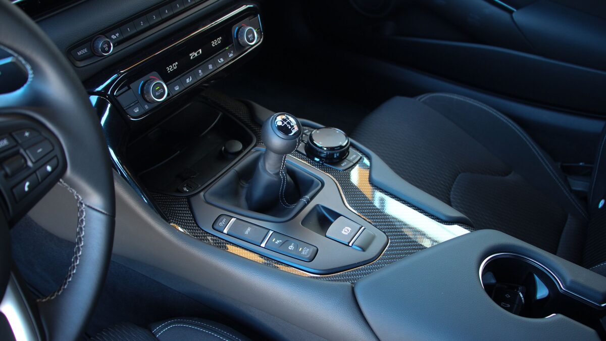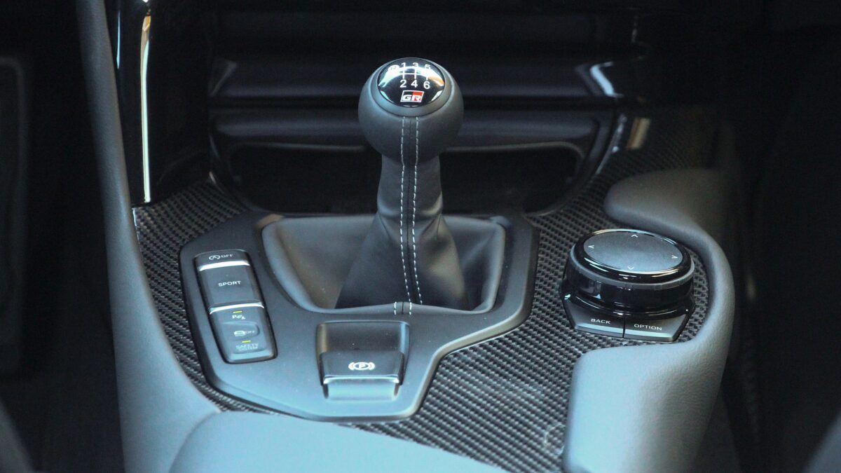 Aztán ott az a „varázslat” is, hogy nem mindegy, milyen a váltás érzete. Ehhez optimálisra kell méretezni, illetve súlyozni a váltógombot, ez a Surpra esetében 200 gramm. A kis gömb tökéletesen kézre esik, a váltások pedig valóban nagyszerűek ezzel a szerkezettel, kell egy kis erő, hogy a megfelelő helyre toljuk a kulisszában, de amúgy nagyon szépen mozog a kar, tényleg hozzájárul az emlékezetes vezetési élményhez. Persze ehhez a megfelelő kuplungpedál is szükséges, ebben szintén nem vallott szégyent a Toyota. Egyébként magát a váltót is a Toyota „legózta” össze a ZF részegységeiből, hiszen ehhez a sorhatos motorhoz nem volt manuális váltó.