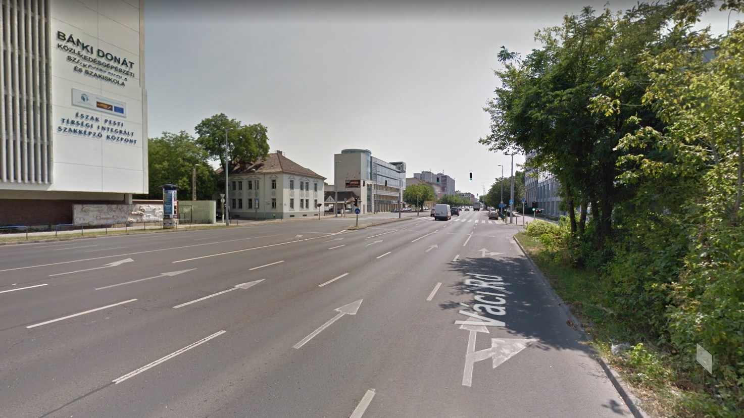 A váci út forgalma reggelente erős, de rendszerint csak a belső sáv áll, mert a buszon miatt senki nem meri használni a külsőt, pedig az Árpád útnál épp azok miatt áll meg a belső sáv. Ma nem működtek a lámpák se, és az ép ész sem az autósoknál (Fotó: Google Maps)