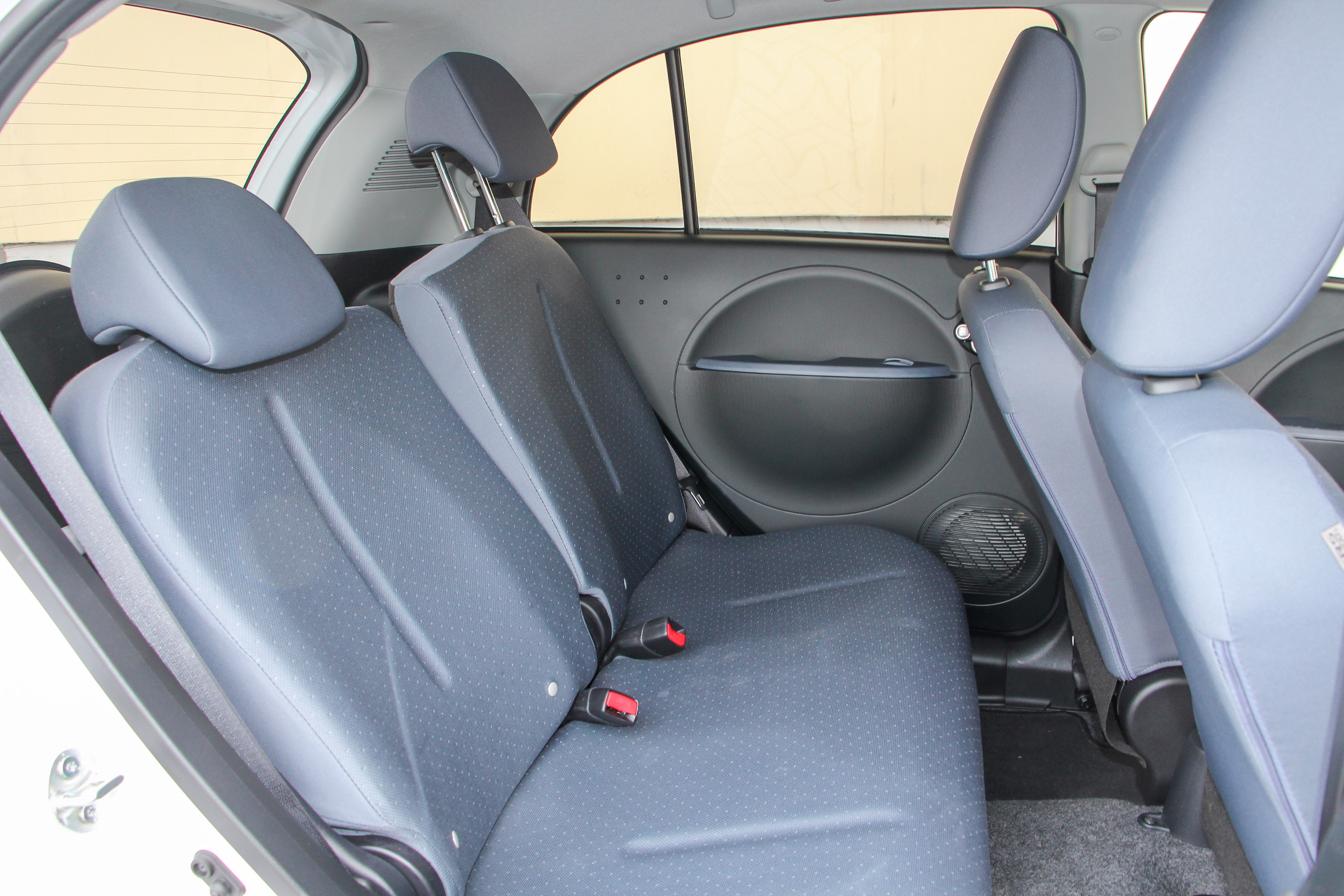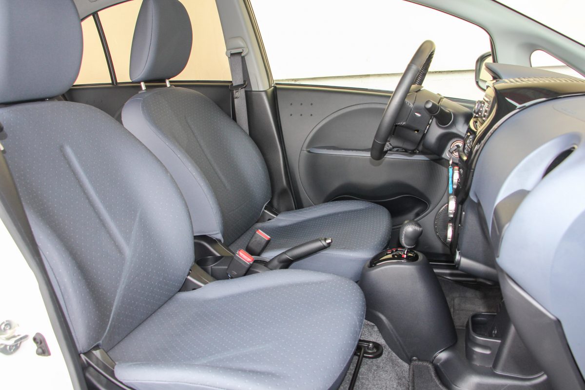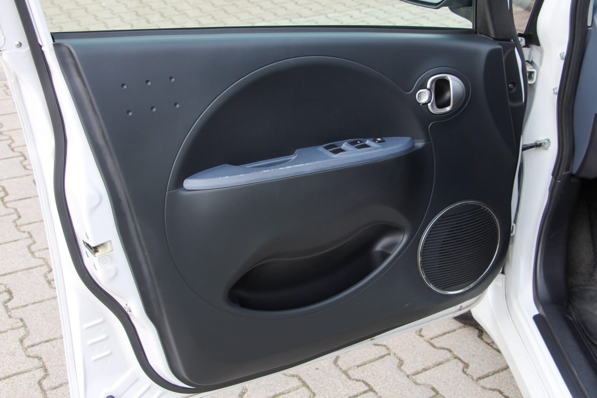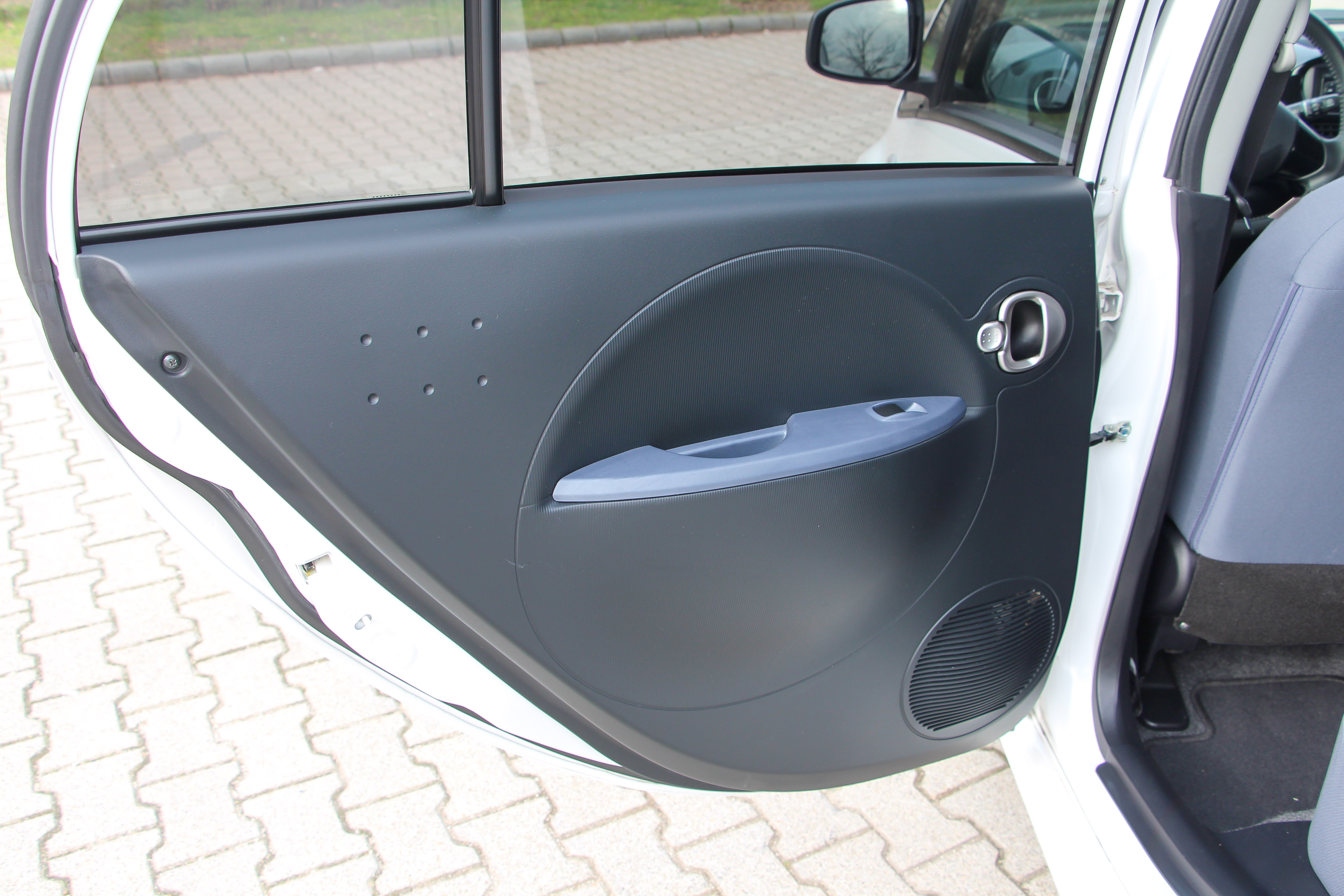 Egyszerű, de korrekt tartású ülések elöl, szinte csak lóca hátul. Városi távokon így sem panaszkodhatunk az elektromos miniautóban