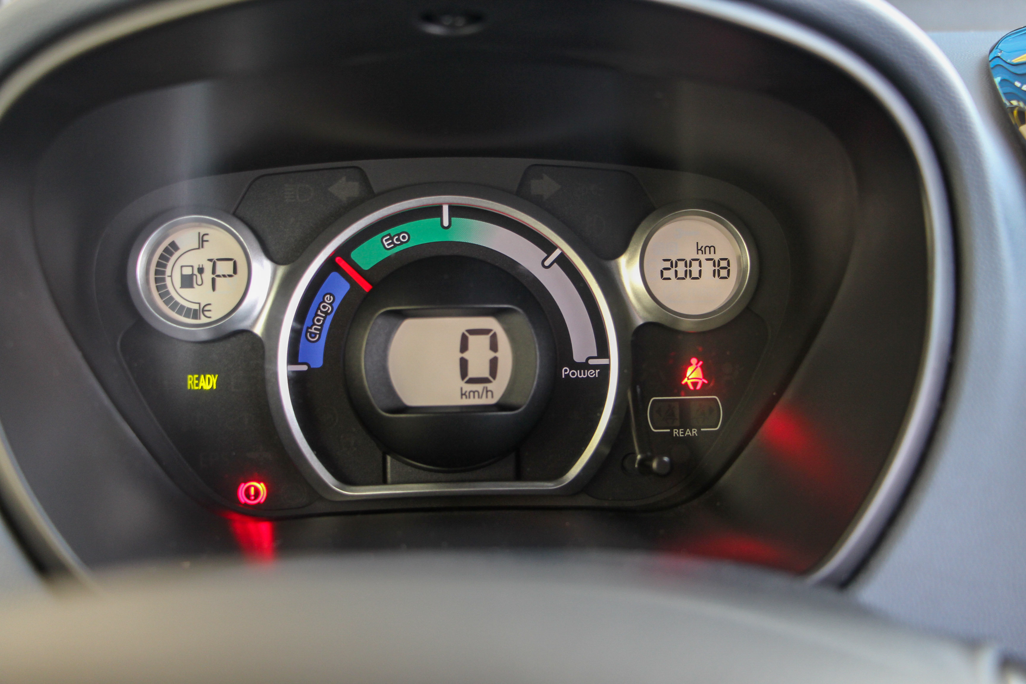 Főműszer a sebességmérő és az energiafelvétel mutatója. A megtett kilométerek helyére a megtehetők száma is lapozható