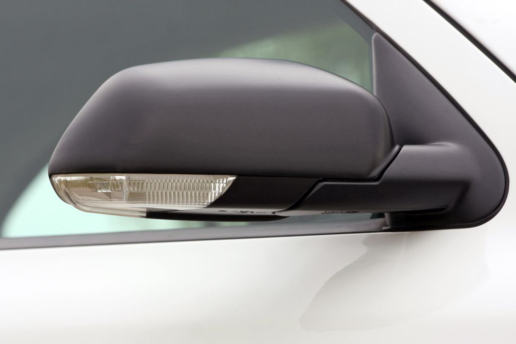 Kicsit lapos, de a sofőr oldalán osztott látóterű az oldalvillogós, amúgy elektromos, fűthető külső tükör, Octavia-sajátosság a hátsó lámpa fektetett V-betűje