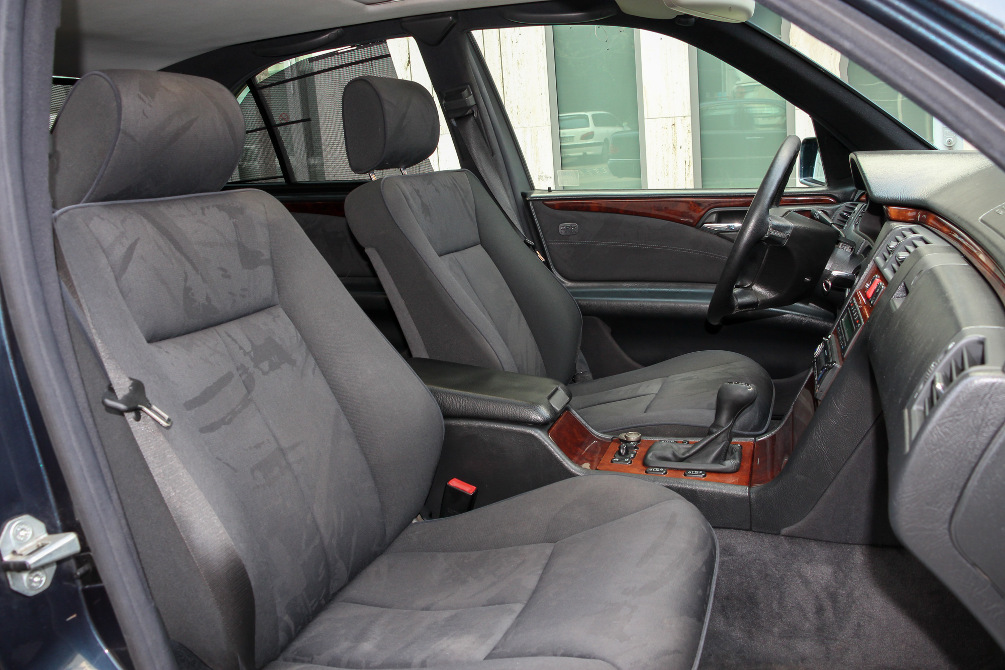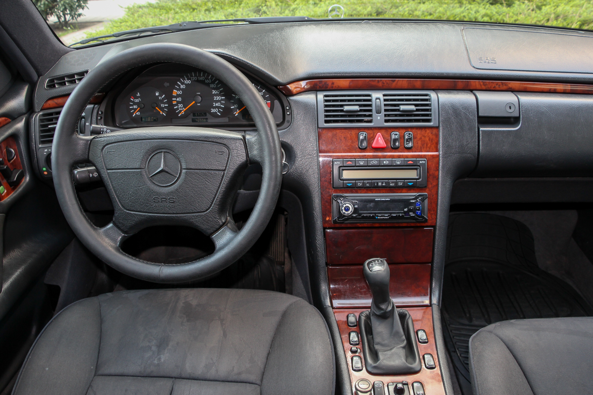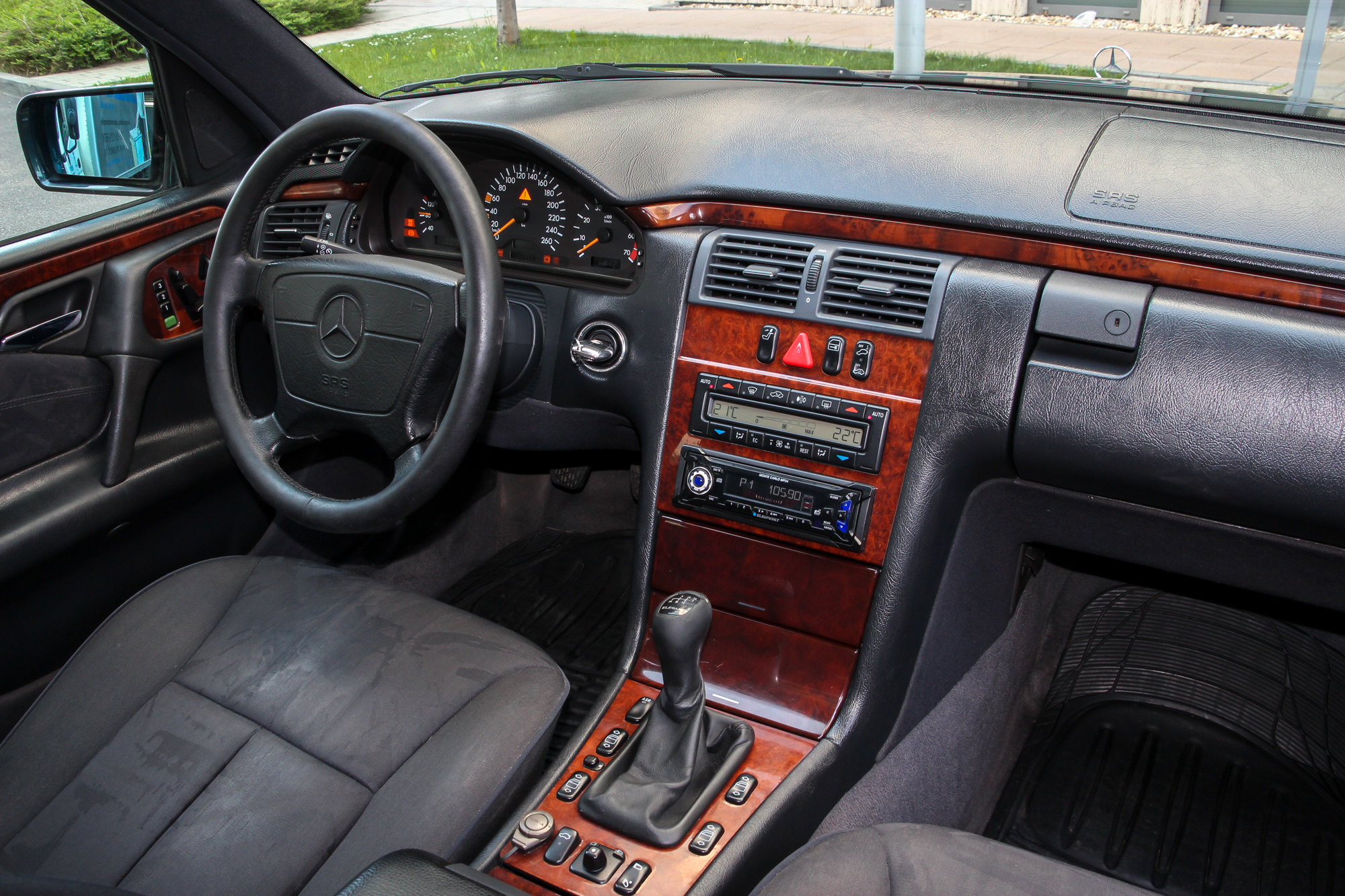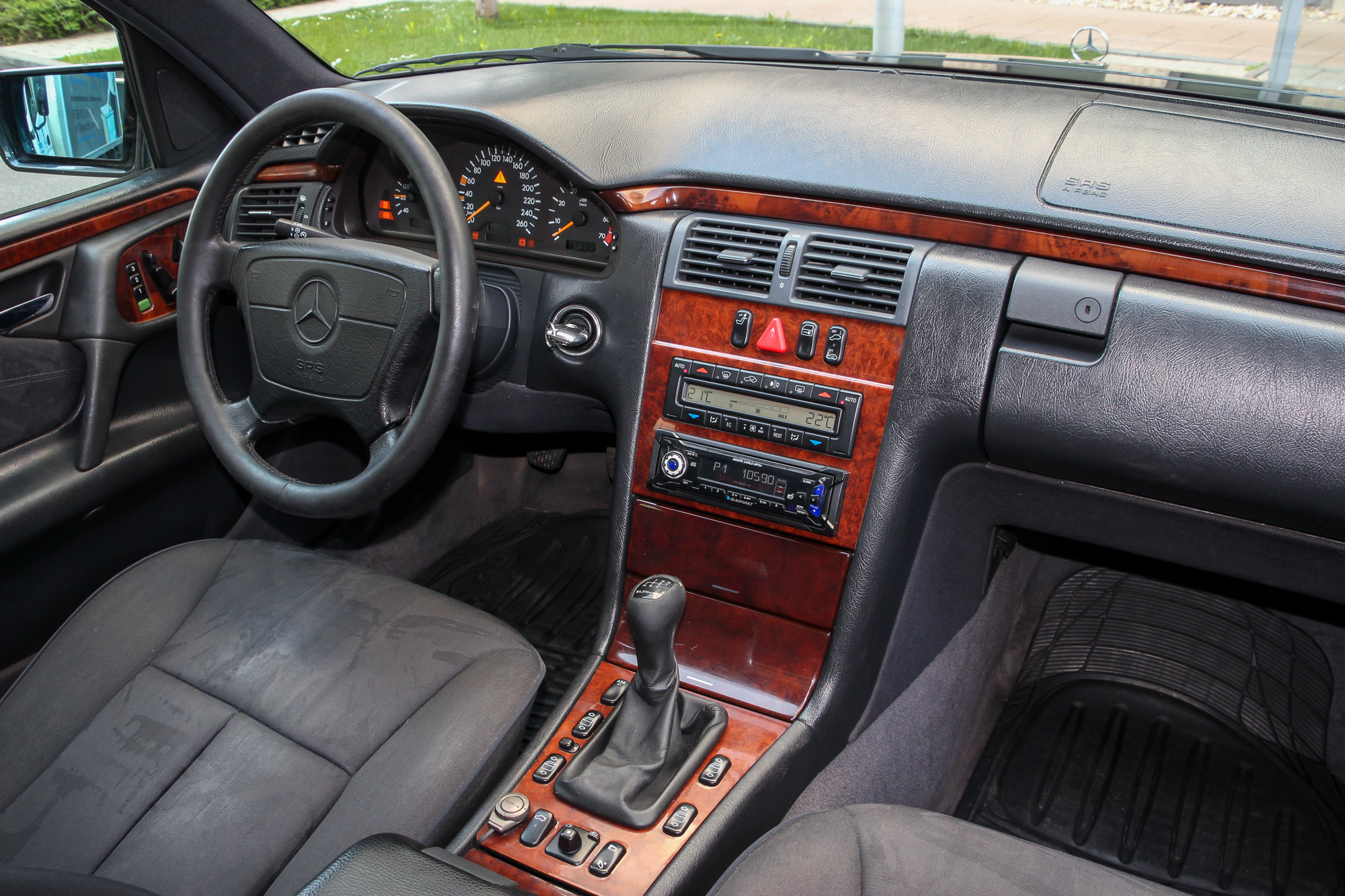 Az ülések elöl-hátul kényelmesek, négy felnőttnek igen jó, tágas utazóautó a W210-es. Ez a teljesen követhető előéletű példány újonnan Olaszországban állt forgalomba, ott egy olasz-magyar házaspár rendelte és konfigurálta, majd a feleség autójaként, magyar kézben és részint Magyarországon szolgált. Itthon először a kapuvári húsüzem marketingigazgatója vette meg, tőle a mostani marketingszakember tulajdonos. Ez csupán azért érdekes, mert érdekesen vásárolt: először az autót nézte meg, majd az 5 évvel ezelőtt még sokak által használt iwiw rendszerében informálta le a Mercedes gazdáját. Látta, hogy az E-osztály szinte családtag volt, megkapta a kívánt törődést, ahogyan aztán tőle is. A konfiguráció egyedi és józan: az Elegance, tehát eleve jó ellátmányú, fabetétes E kétzónás automata klímával, elektromos és memóriás első ülésekkel, elektromosan állítható kormányoszloppal, napfénytetővel és gyári sízsákkal felszerelt. Az alapból adott 15 colos lemezkerekeknél egyel nagyobb 16 colos lemezfelnikkel, amelyeken most Firestone téli abroncsok vannak, a tavaly vásárolt Bridgestone garnitúra pedig ötküllős Dezent felnin várja az autóval együtt új tulajdonosát. Utólagos kiegészítőként Nokia Bluetooth-kihangosító, a gyári kazettás Becker rádió helyén Blaupunkt MP3-as CD-s fejegység, valamint gyári tetőcsomagtartó is van az autóhoz. Hogy tükrei elektromosak, elektromosan behajthatók, elektromos ablakai lefelé mind automaták, az ennél az E-nél még magától értetődő, az viszont már komolyabb extra, hogy az összes hátsó ablakra gyári sötétítőfüggöny húzható, vagy hogy középső visszapillantója elektrokróm (éjszaka fényre sötétedő).