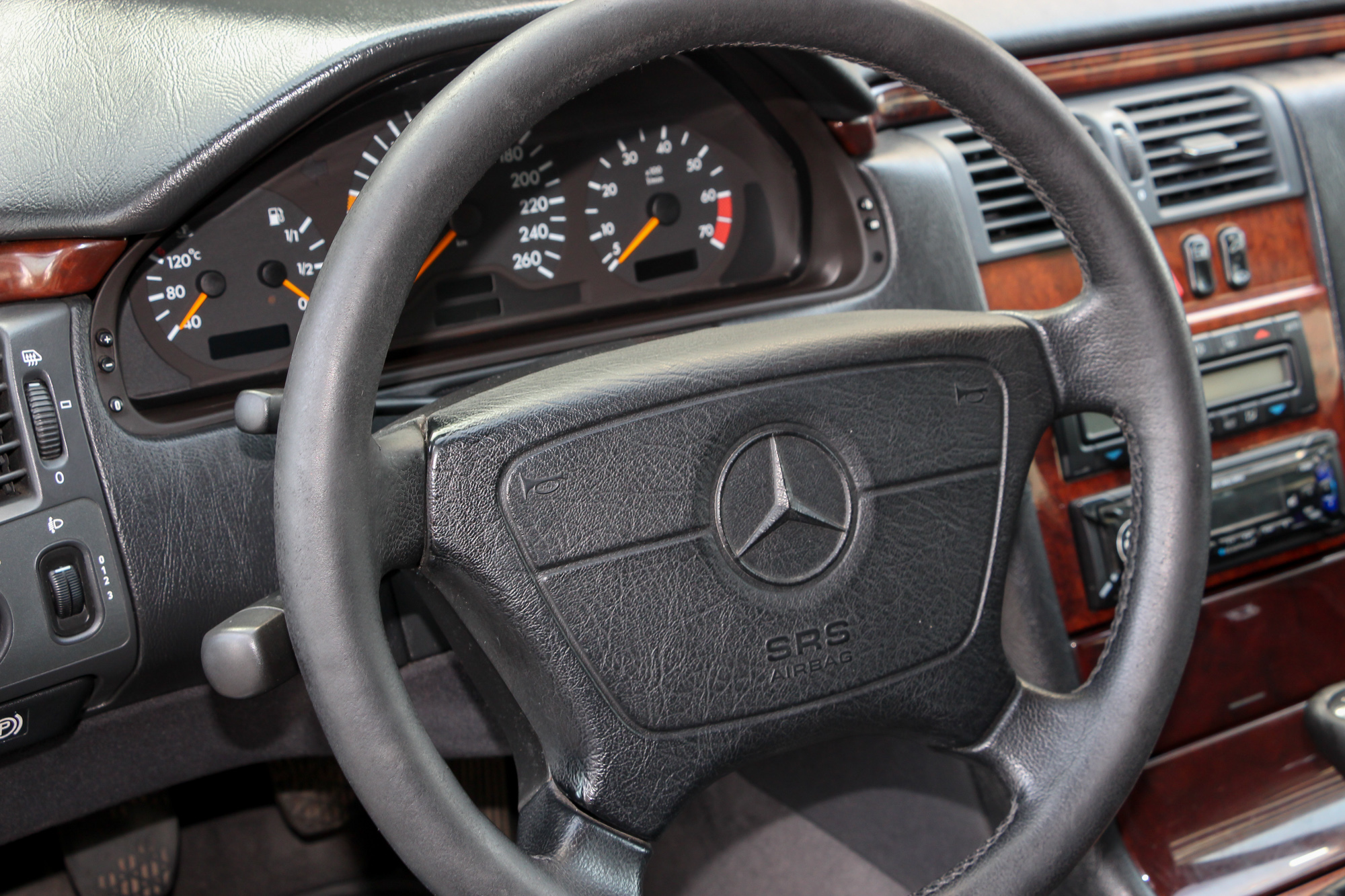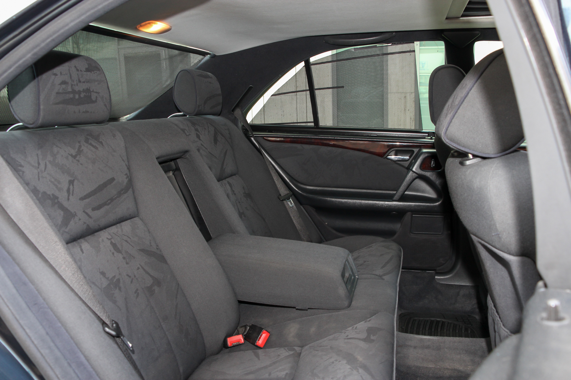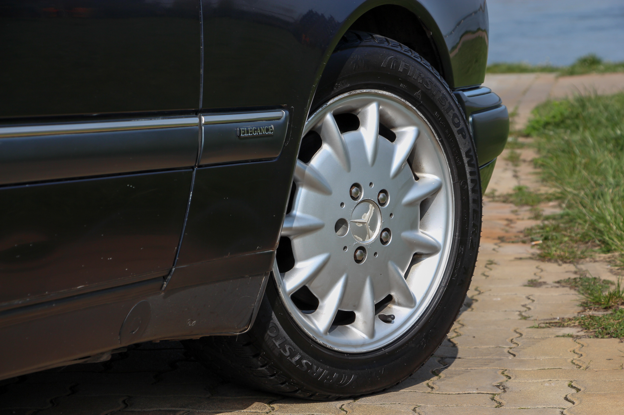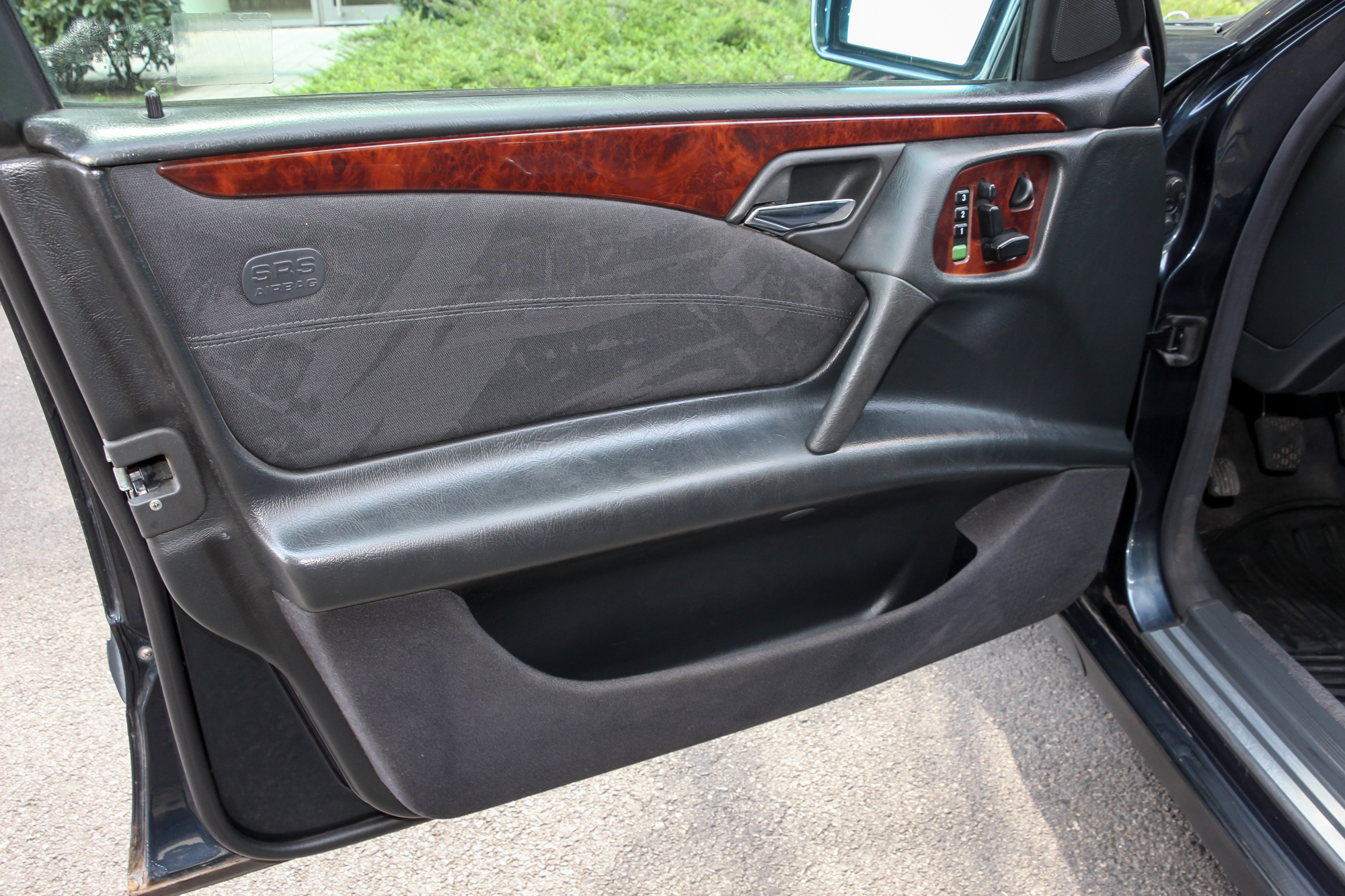 Az ülések elöl-hátul kényelmesek, négy felnőttnek igen jó, tágas utazóautó a W210-es. Ez a teljesen követhető előéletű példány újonnan Olaszországban állt forgalomba, ott egy olasz-magyar házaspár rendelte és konfigurálta, majd a feleség autójaként, magyar kézben és részint Magyarországon szolgált. Itthon először a kapuvári húsüzem marketingigazgatója vette meg, tőle a mostani marketingszakember tulajdonos. Ez csupán azért érdekes, mert érdekesen vásárolt: először az autót nézte meg, majd az 5 évvel ezelőtt még sokak által használt iwiw rendszerében informálta le a Mercedes gazdáját. Látta, hogy az E-osztály szinte családtag volt, megkapta a kívánt törődést, ahogyan aztán tőle is. A konfiguráció egyedi és józan: az Elegance, tehát eleve jó ellátmányú, fabetétes E kétzónás automata klímával, elektromos és memóriás első ülésekkel, elektromosan állítható kormányoszloppal, napfénytetővel és gyári sízsákkal felszerelt. Az alapból adott 15 colos lemezkerekeknél egyel nagyobb 16 colos lemezfelnikkel, amelyeken most Firestone téli abroncsok vannak, a tavaly vásárolt Bridgestone garnitúra pedig ötküllős Dezent felnin várja az autóval együtt új tulajdonosát. Utólagos kiegészítőként Nokia Bluetooth-kihangosító, a gyári kazettás Becker rádió helyén Blaupunkt MP3-as CD-s fejegység, valamint gyári tetőcsomagtartó is van az autóhoz. Hogy tükrei elektromosak, elektromosan behajthatók, elektromos ablakai lefelé mind automaták, az ennél az E-nél még magától értetődő, az viszont már komolyabb extra, hogy az összes hátsó ablakra gyári sötétítőfüggöny húzható, vagy hogy középső visszapillantója elektrokróm (éjszaka fényre sötétedő).
