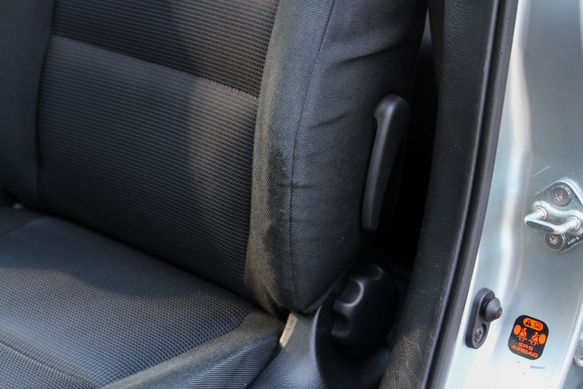 Íme a legjelentősebb utastéri kopás, ami inkább csak némi bolyhosodás a sofőr ülésének támláján