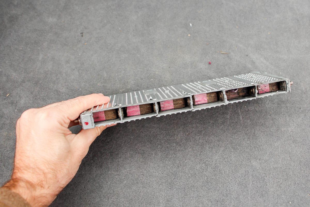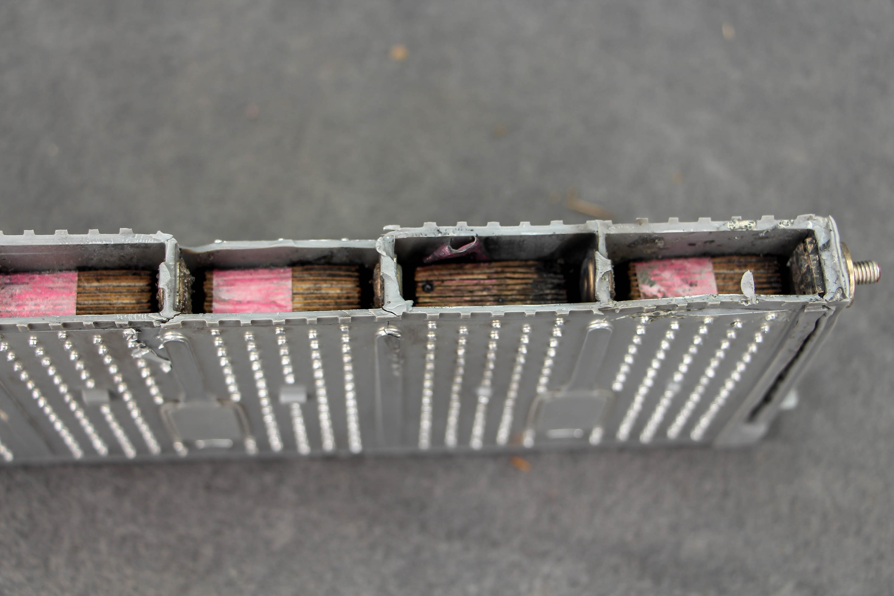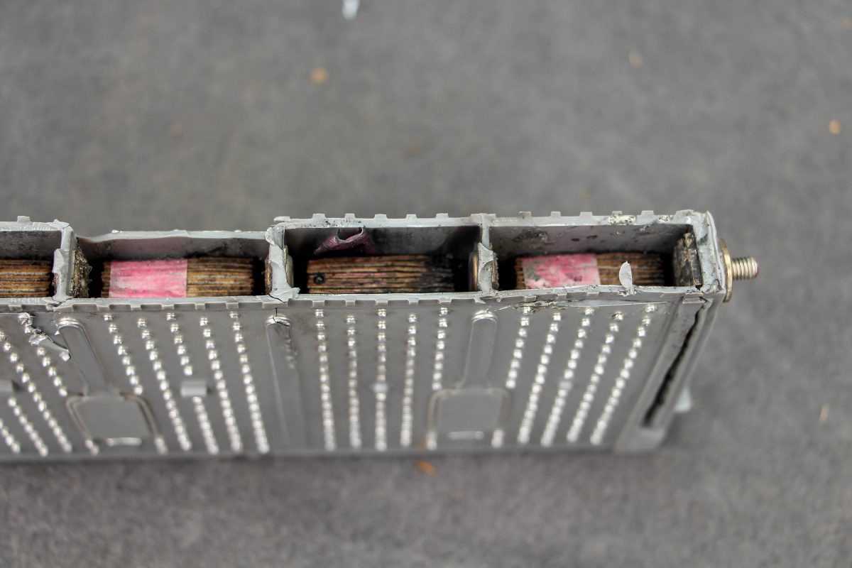 Ritkán, de előfordul, hogy eldurran egy cella (amiből a fotón négy látható). A gyári javítási mód a teljes, 28 modulból álló akkucsomag cseréje, a hazai ipar persze modulonként is javít