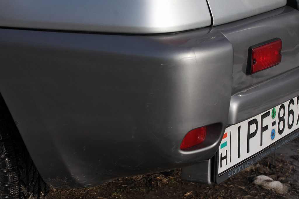 A hátfalán hordja teljes értékű pótkerekét. Nem terepjáró, de hóban-dzsuvában jól jöhet az összkerékhajtása