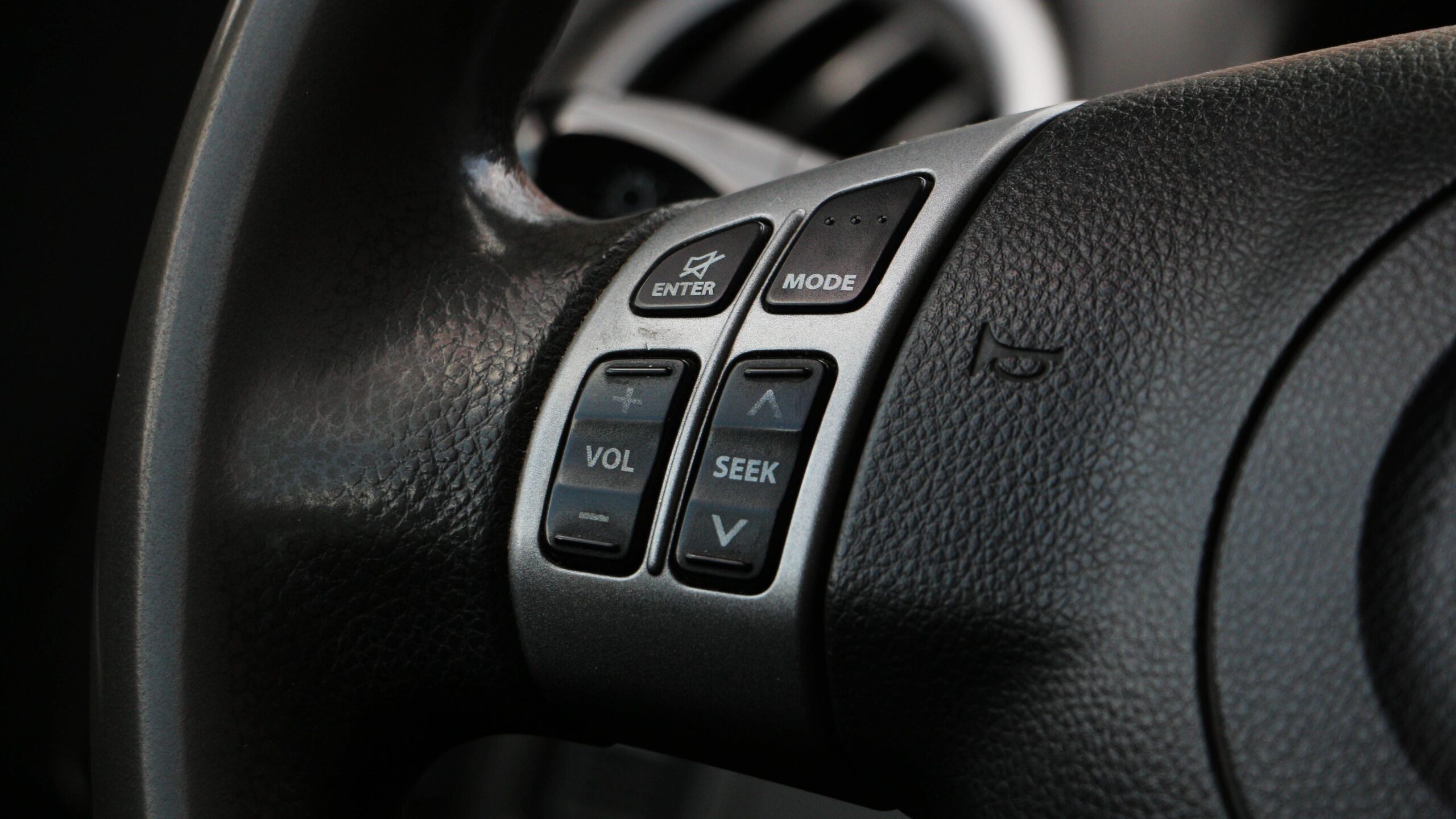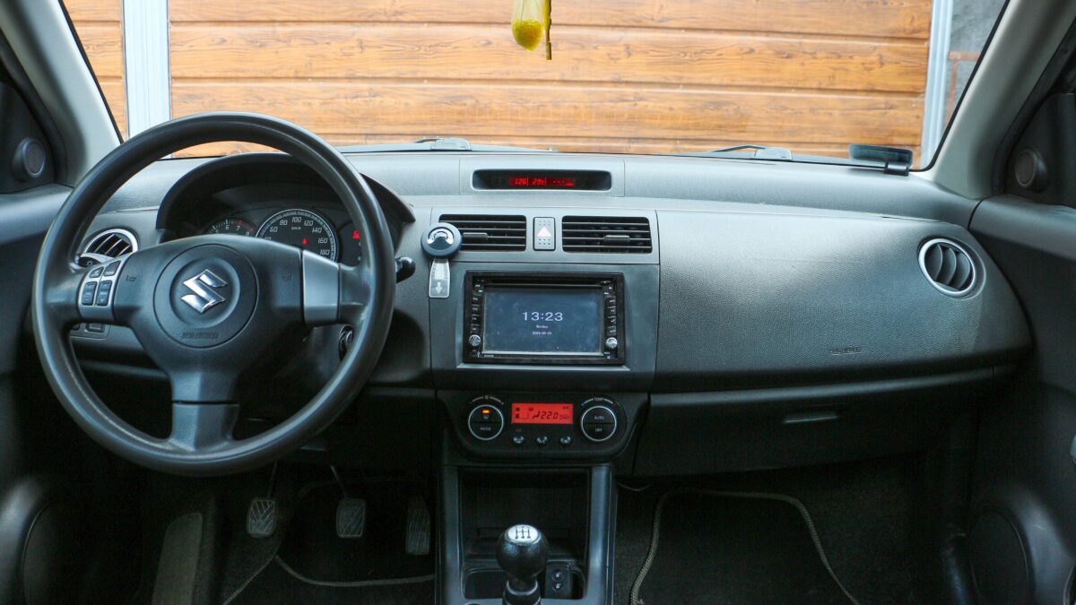 Felette a 7 colos kijelző természetesen utólagos modernizáció, abból viszont nem a legjobb, hiszen még az Android Auto vagy az Apple CarPlay sem futtatható rajta, de legalább a BlueTooth működik, így a gyárival ellentétben nem kell kábelekkel és CD korongokkal vacakolni. A kormány mögött viszont a jól megszokott analóg óracsoport, ám ez is egy kicsit eltér a tömeg Swiftekétől, hiszen az ezüst dísz, amely a kilométerórát öleli körbe, ugyancsak a magasabb felszereltségi szintekhez járt.