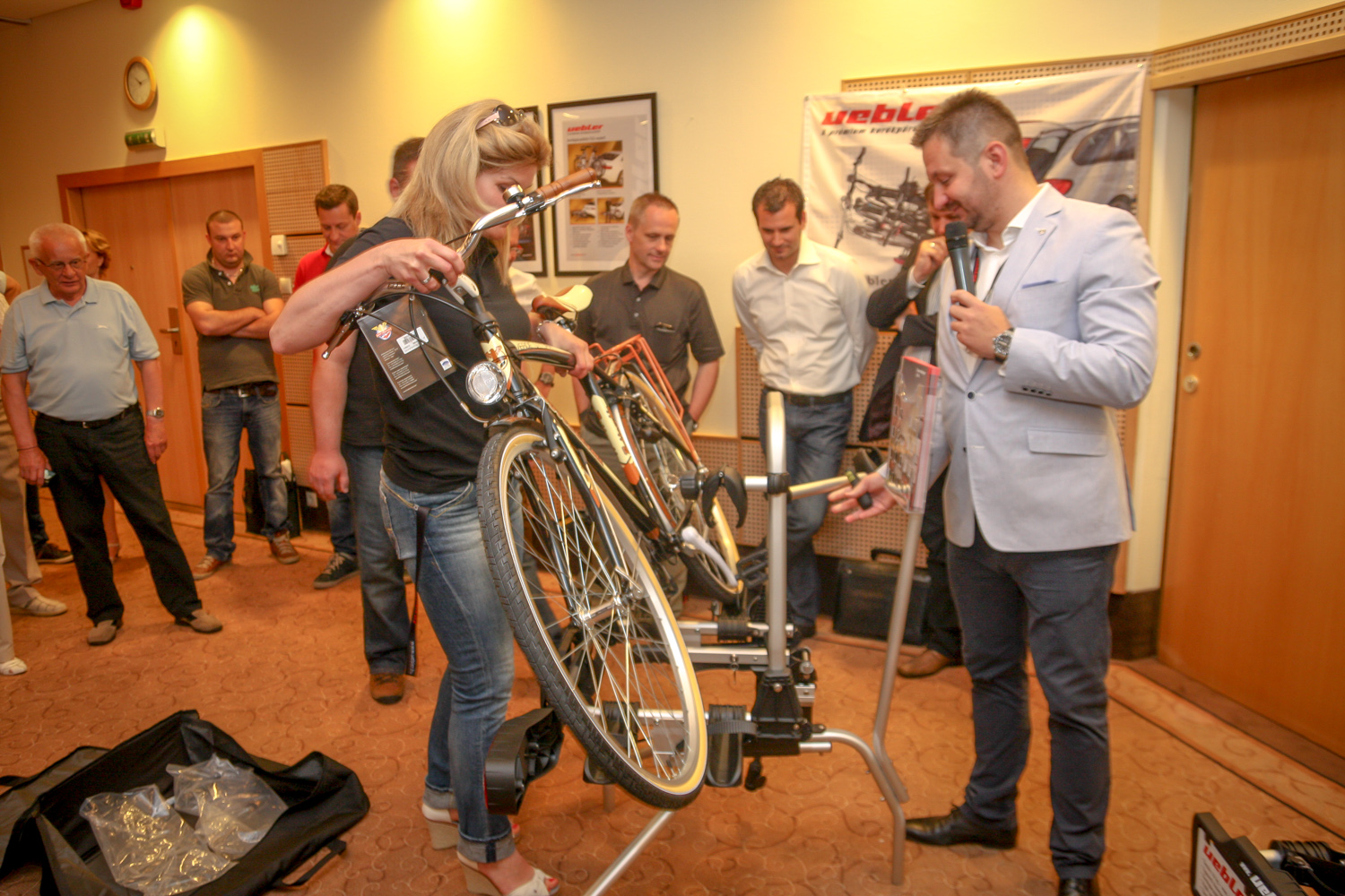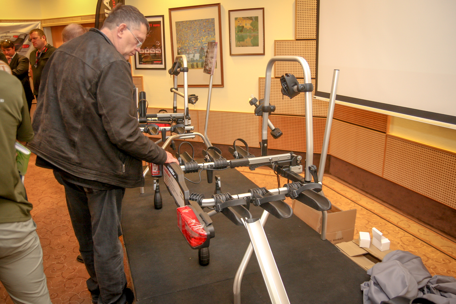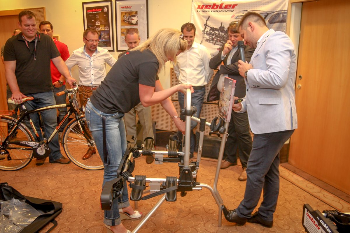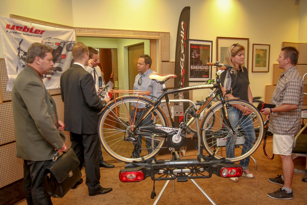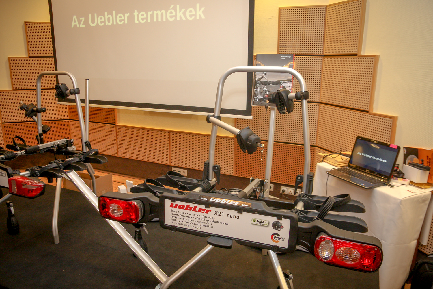 Vonóhorogra szerelhető kerékpárszállítókat importáló új magyar piaci szereplő bemutatkozó sajtótájékoztatóján jártunk, ahol megtudtuk, hogy a Profcar Hungary Kft. a német Uebler cég prémiumkategóriás termékeivel törekszik viszonteladói hálózat kiépítésére. A 2-4 bringa hordozására alkalmas minőségi szerkezetek magyarországi árai még nem ismertek, de mint elhangzott, a piaci átlag fölé várhatóak. Bérlési lehetőség, csereprogram is lesz.