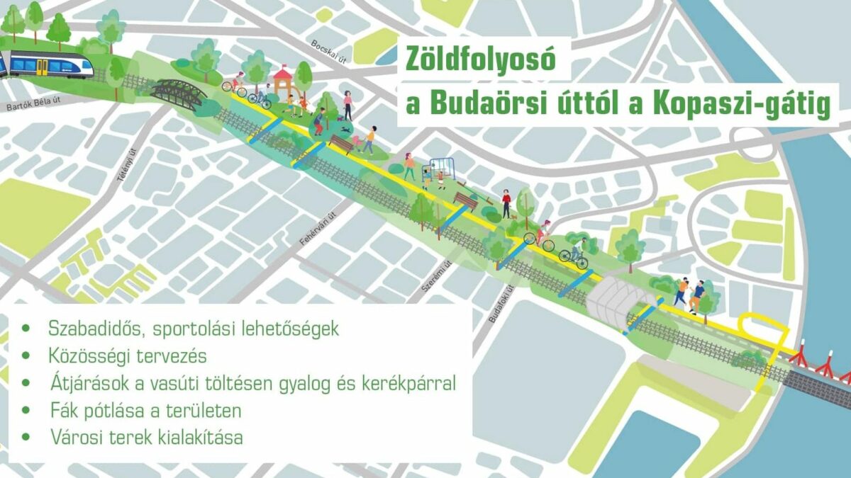 A Hamzsabégi útról a vasúti töltés alatt jól megvilágított, kizárólag gyalogosok és kerékpárosok számára használható átjárókat is létesítenek majd. A Csonka János teret a jelenleginél sokkal zöldebbre tervezik, a töltés menti utakon pedig kettős fasor kialakítása várható. Ez a déli oldalon jellemzően a meglévő fasor kiegészítését jelenti, míg az északi oldalon új fák ültethetők, és természetesen a parkolás rendezett körülményeit is megteremtik majd.Folytatódik a budai fonódó villamos projekt (kép: BFK)
