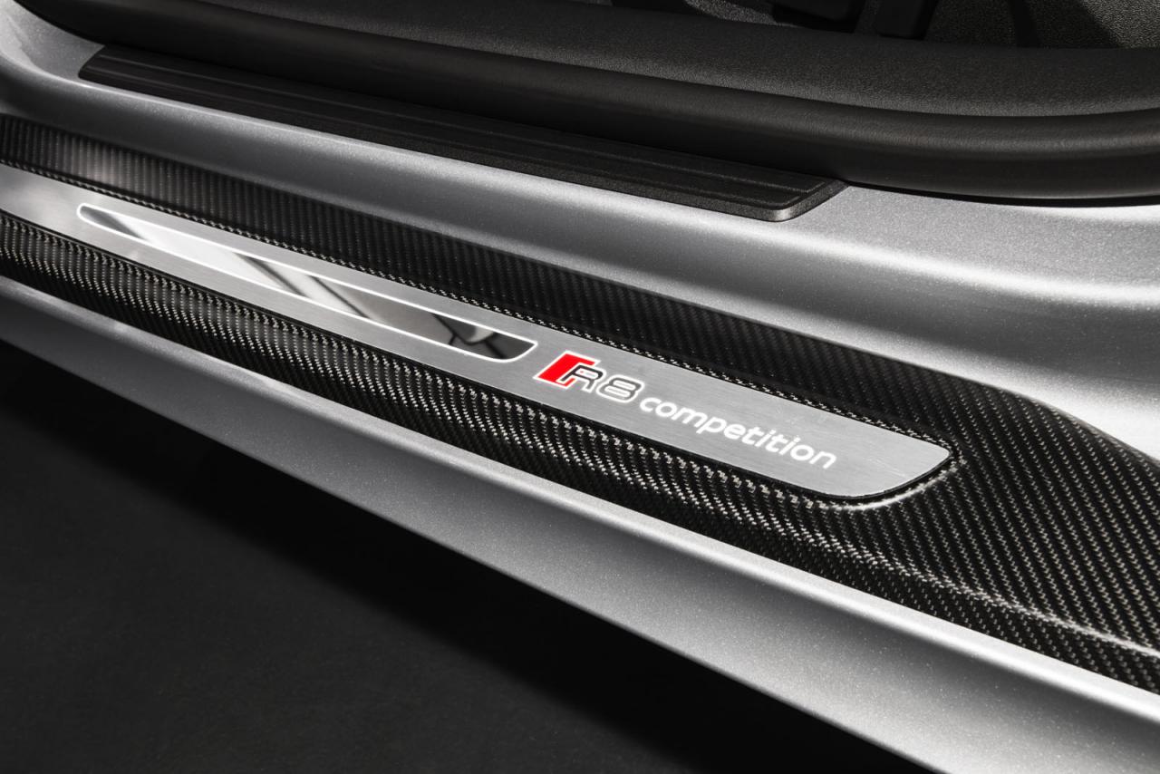 A limitált széria forgalmazása várhatóan jövő év elején kezdődik. Különös ismertetőjelei közé tartoznak a számos helyen felhasznált karbon díszítőelemek. Az első lökhárító légterelői, a tükörborítás, a hátsó diffúzor és szárny, a tükörborítás és a beltérben is számos elem készült szénszálas anyagból. Az R8 Competition fényes fekete színű könnyűfémfelnit kapott. A még sportosabb hangzás érdekében sport kipufogórendszer is került az autóba, amely magasfényű fekete végeket kapott. A nagy teljesítményű fenevad fékezhetőségére is hangsúlyt fektettek a mérnökök, kerámia féktárcsákat és pirosra fényezett eloxált féknyergeket alkalmaztak. [BANNER type="1"]