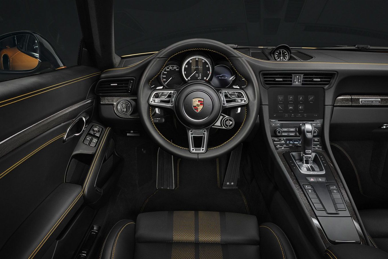 A beltér szintén egyedi, számozott plakett van, uralkodó anyag az alcantara és a perforált bőr, ahogy megszokhattuk. Természetesen a karbon is beszivárgott az utasok elé, ahogy a külső arany színe is az elektromosan állítható sportüléseken és a varrásokon. Motorterében egy, a hagyományosnál 27 lóerővel erősebb 3,8 literes, hathengeres, biturbó boxermotor dolgozik, ami így már 607 lóerős. A megállásról kerámia fékrendszer, a vezethetőségről összkerékkormányzás gondoskodik, a Sport Chrono csomagról nem is beszélve. [BANNER type="1"]