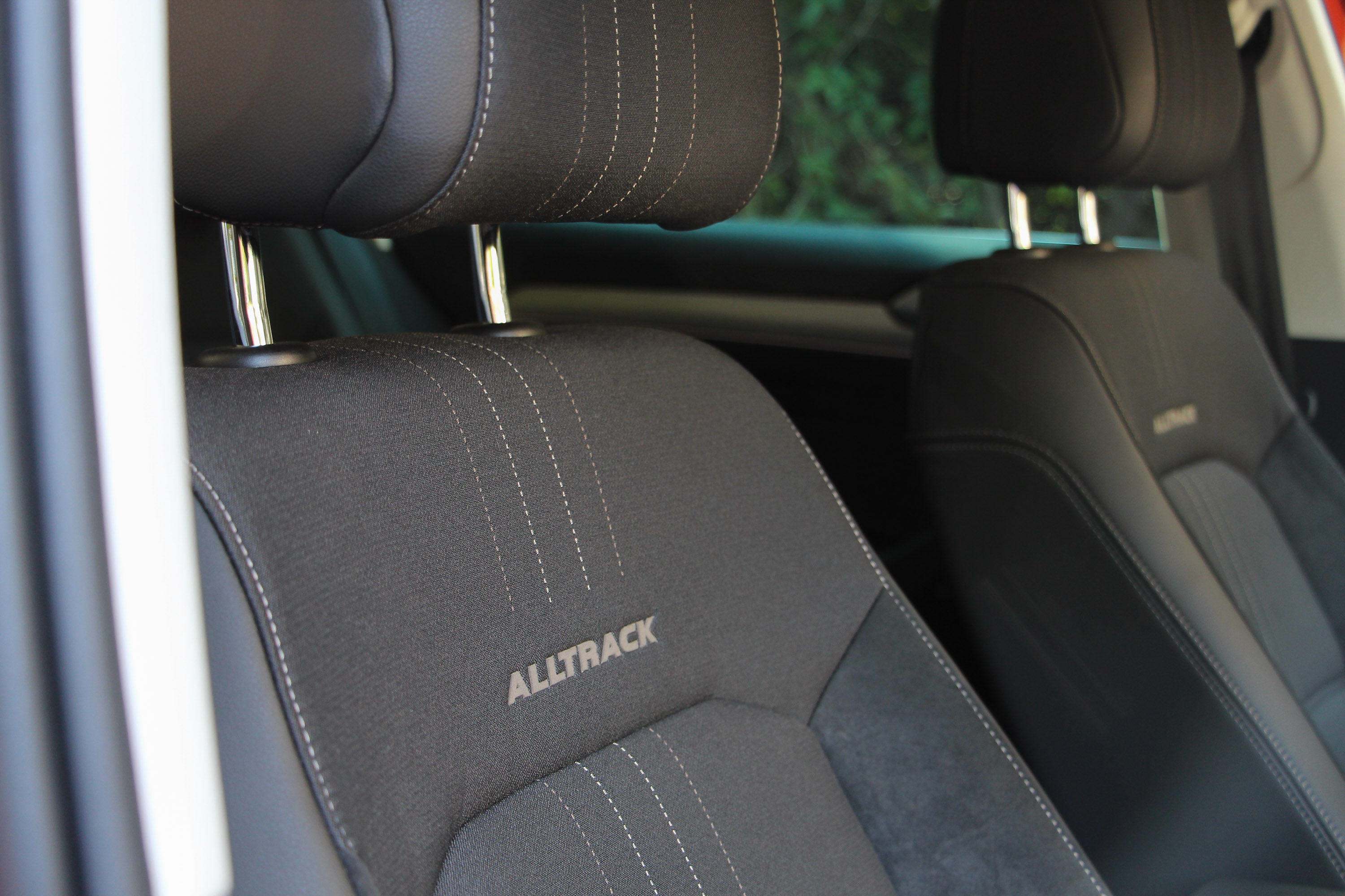Hajszálnyit, 11 literrel kisebb az Alltrack csomagtere a Varianténál, ám így is óriási, a távirányítással is indítható támladöntéssel 1769 literesre bővíthető, ajtaja lehet elektromos mozgatású, padlója sínen tologatható rögzítőpaneles