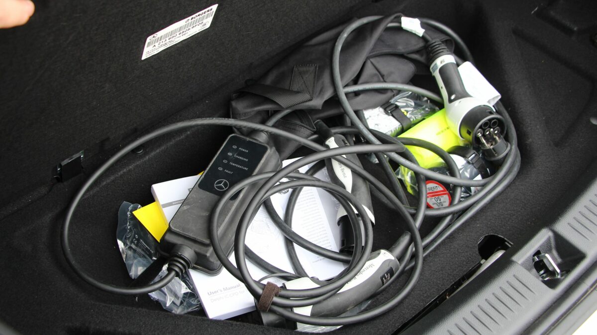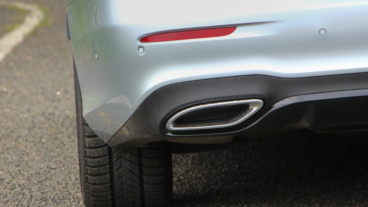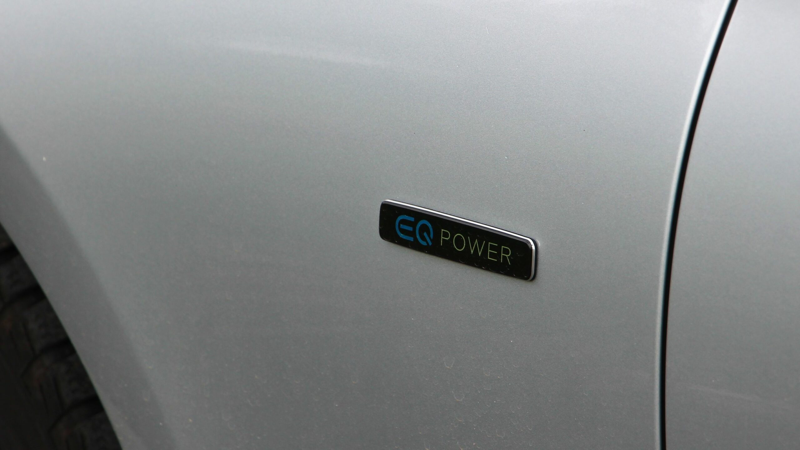 A tesztautó hibridségéről viszont csak apró jelek árulkodnak a zöld rendszámon kívül. Ilyenek az EQ Power feliratok, hiszen most már minden villanyosított Daimler modellben ott szerepel ez a két betű, illetve a töltőcsatlakozó fedele a hátsó lökhárító jobb szélén.