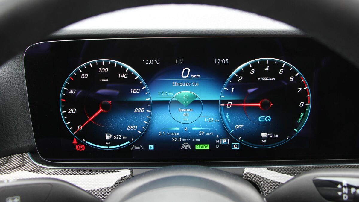 Szívesen látnám más gyártóknál is a Mercedes ülésállító módszerét. Az ajtóburkolatra helyezték a gombokat, ennél kényelmesebb megoldást jelenleg nem tudok említeni. Arról is gondoskodtak a tervezők, hogy az infotainmentet mindenhonnan kezelhessük. Na jó, hátulról nem, de itt azért talán kicsit túlzásba is estek. Egyrészt ott az érintőképernyő, de van még tapipad is, illetve a kormánykerék kapcsolói. Az biztos, hogy vezetés közben nem érdemes elmélyedni a menürendszerben. Egyszerűen túl sok figyelmet igényel. Hiába a haptikus gombok a kormánykeréken, ezek kezelése is kissé esetleges. Ha nem a megfelelő erővel és szögben érek hozzá, akkor simogathatom naphosszat, nem vált például számot a hifi. Összességében persze minden teljesen logikus, tehát a káoszban azért ott rejlik a rendszer. Az MBUX beszédfelismerőjével pedig jót lehet mókázni, most már favicceket is tud, ha épp ilyesmit kérünk tőle.