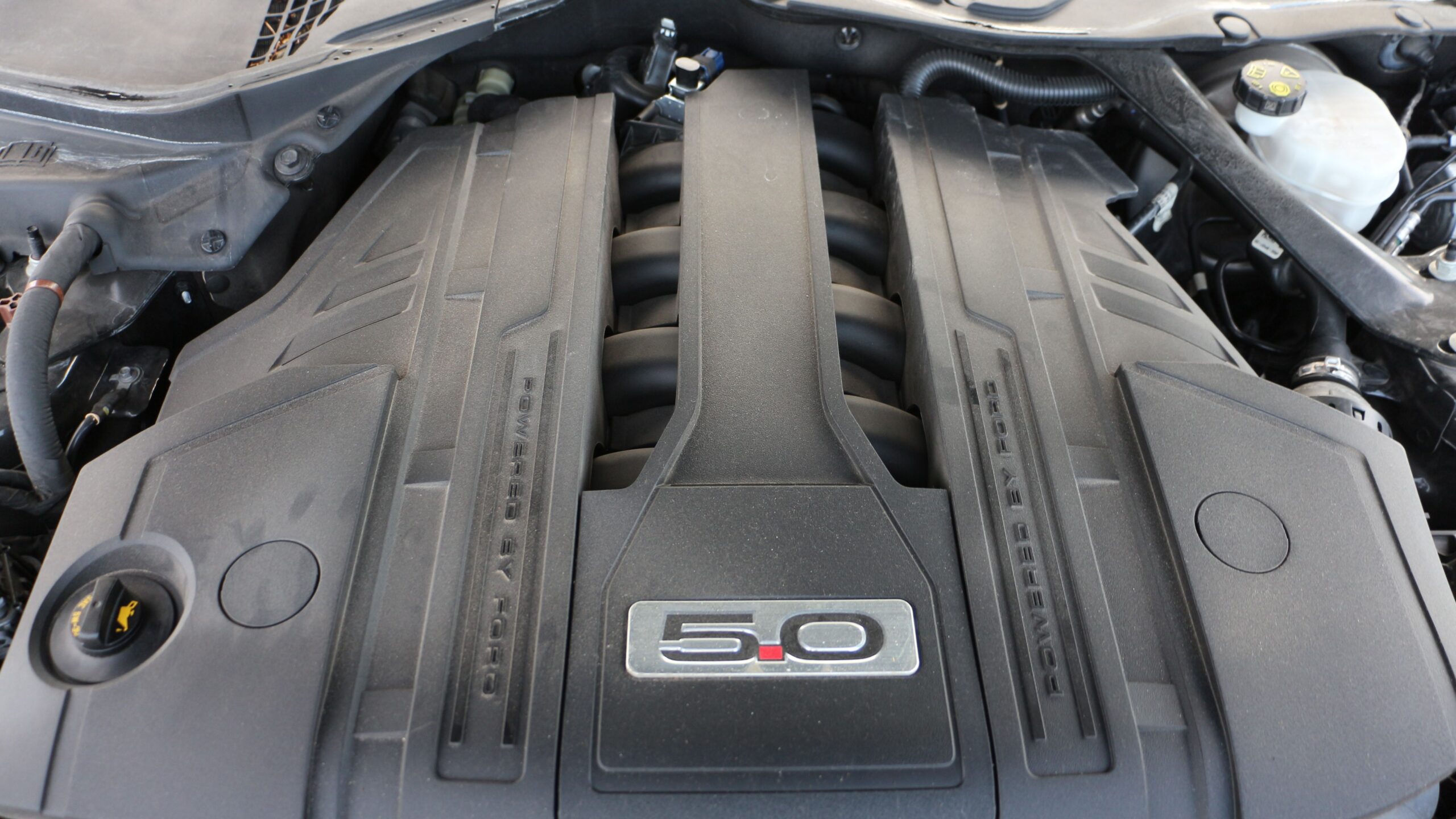A Mustang lényegi részét a motortérben találni a V8-as motor képében