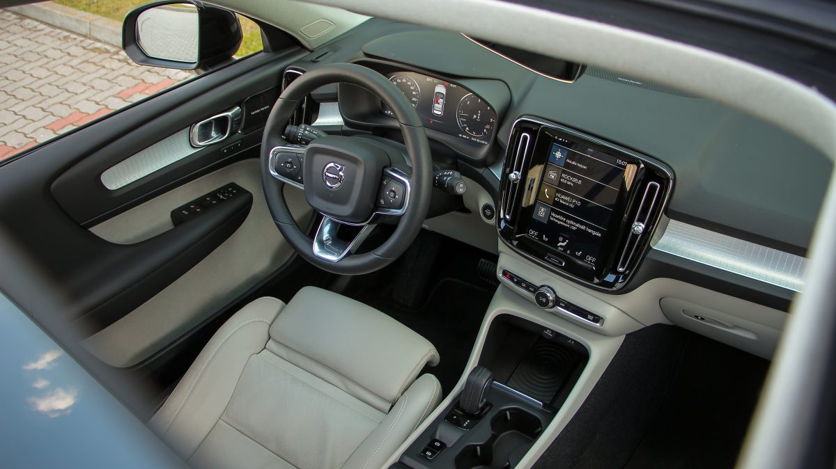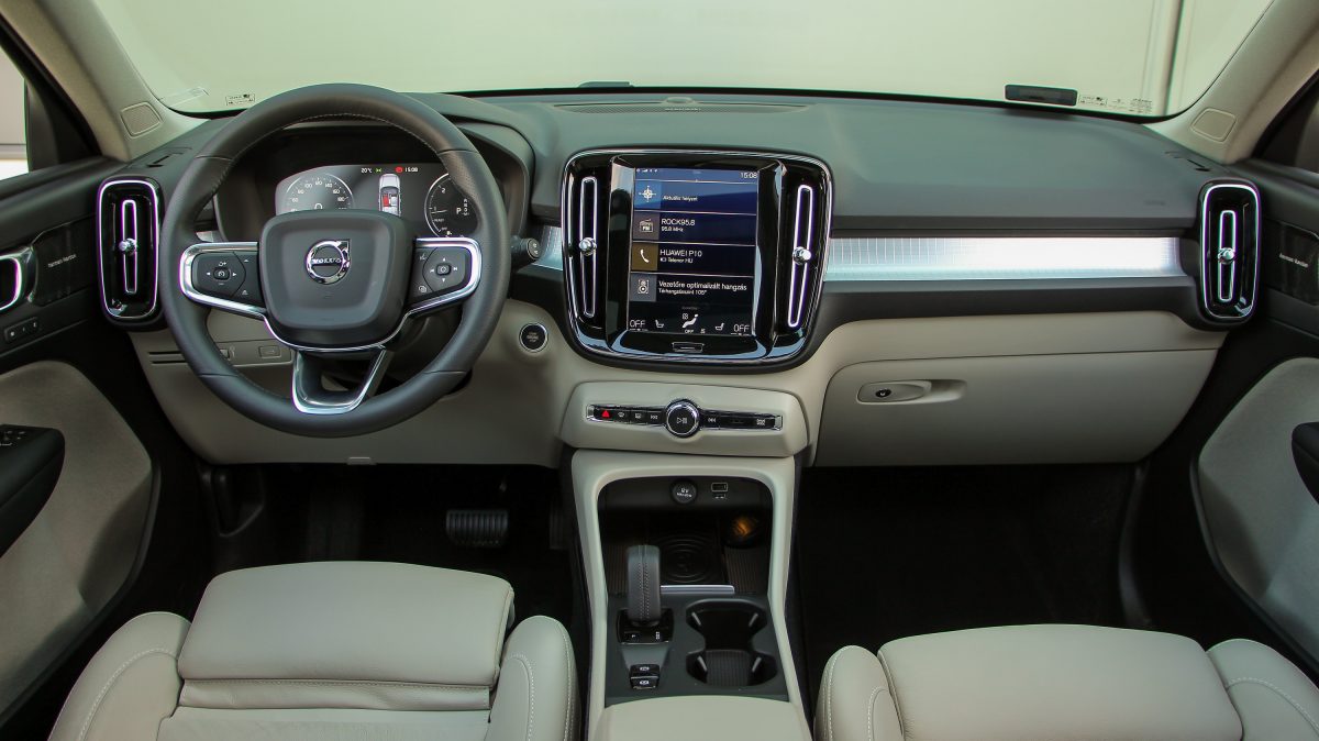 Önvezetésben tehát igencsak élen jár az XC40, még akkor is, ha messze van még a teljes önvezetéstől. Ugyanakkor nekünk vezetni sem rossz. Hangolható a kormányrásegítés, a váltó és a motor élénksége is – a menetmódválasztó Individual, azaz egyéni állásában, de persze van fix konfigurációk is. A futómű stabil, de megelégednék a Momentum szint 17 colos kerekeivel, ugyanis a tesztautó 18 colosaival már kissé feszes volt – a hazai utakhoz. Ami a motort illeti: a csúcsdízel 190 lóereje és 400 Nm nyomatéka bőven több az elegendőnél. A 7,9 másodperces 100-as sprint a gyakorlatban annyit jelent, hogy bármikor igen erőteljesen meg tudjuk lódítani az autót, a végsebesség is lehet 210 km/óra, de még fontosabb, hogy a 130 km/órás tempó is alig valamivel 2000/perc fölött futható, nyolcadik sebességfokozatban.