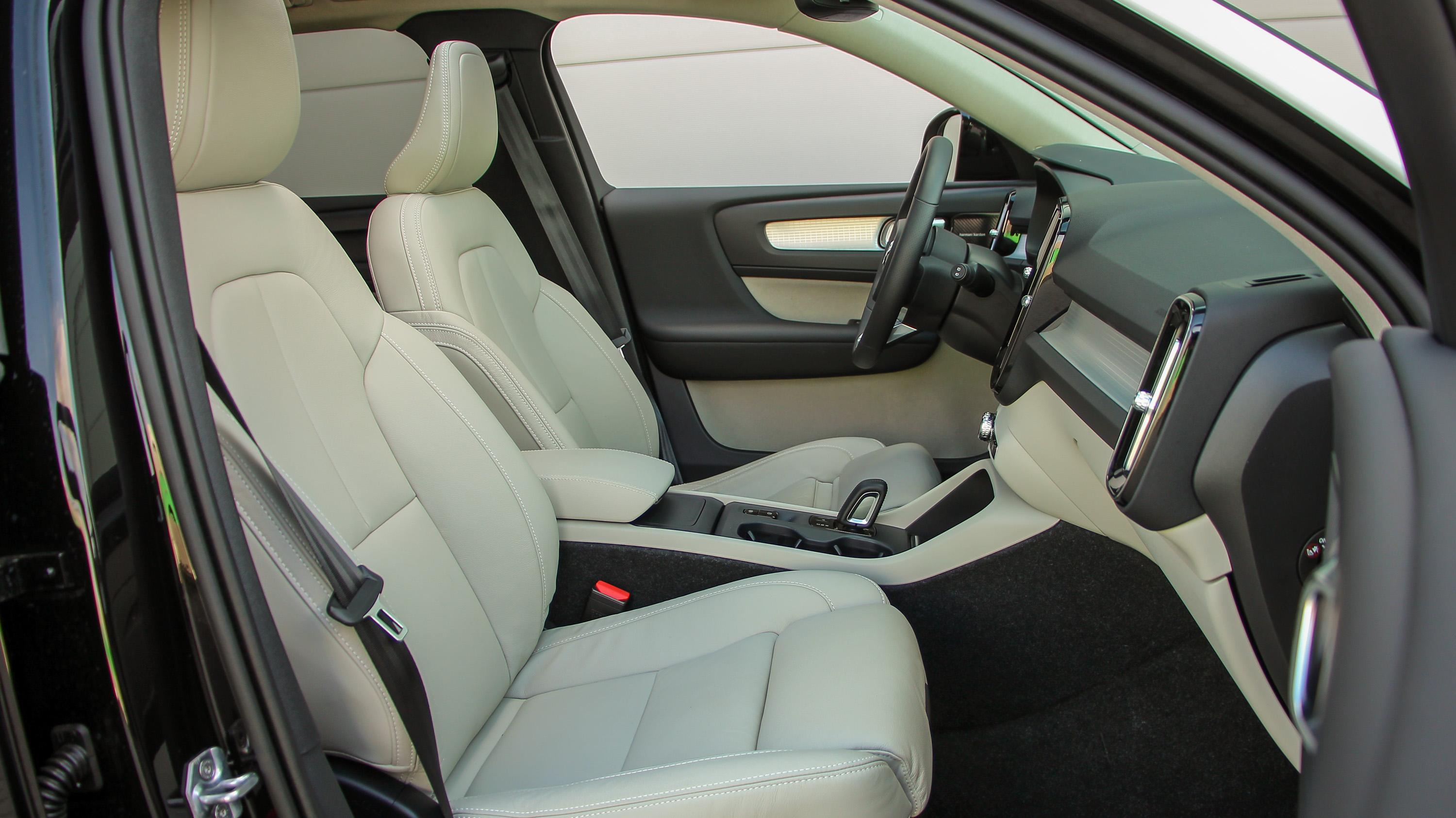 A volán itt többféle módon is szolgál az autó irányítására, a hagyományos tekerhetőségen túl arról kapcsolhatjuk be a távolságtartós tempomatot, illetve a Pilot Assist rendszert, amit a 494 ezer forintos Intellisafe Assist opcióval kapunk. Bár az árlista félautomata vezetésként írja, inkább az elnevezés szerinti asszisztens szót alkalmaznám rá. Tudja az araszolófunkciós tempomatot, sávban tart városi tempónál is, igaz, 65-200 km/órás tempó közötti sávtartót már alapáron kapunk. Sőt, olyan biztonsági extrák járnak már alapáron is, mint a holttérfigyelő, a városi koccanásgátló, ami 60 km/órás tempóig megvéd a más autónak ütközéstől, a kerékpárosok gázolását pedig 50, a gyalogosokét 45 km/óráig hivatott elkerülni, s még azt is ígéri, hogy 15 km/óráig megáll a nagytestű állatok mögött. Utóbbival is egyedülálló az XC40, de ami az igazán állakat ejtő tudás az a 60-140 km/óra között aktív frontális ütközést elkerülő kormányzás, persze szigorúan csak akkor, ha a szenzorok szerint arra van mód. Mindez persze olyannyira elvi, hogy természetesen nem tettem próbára.