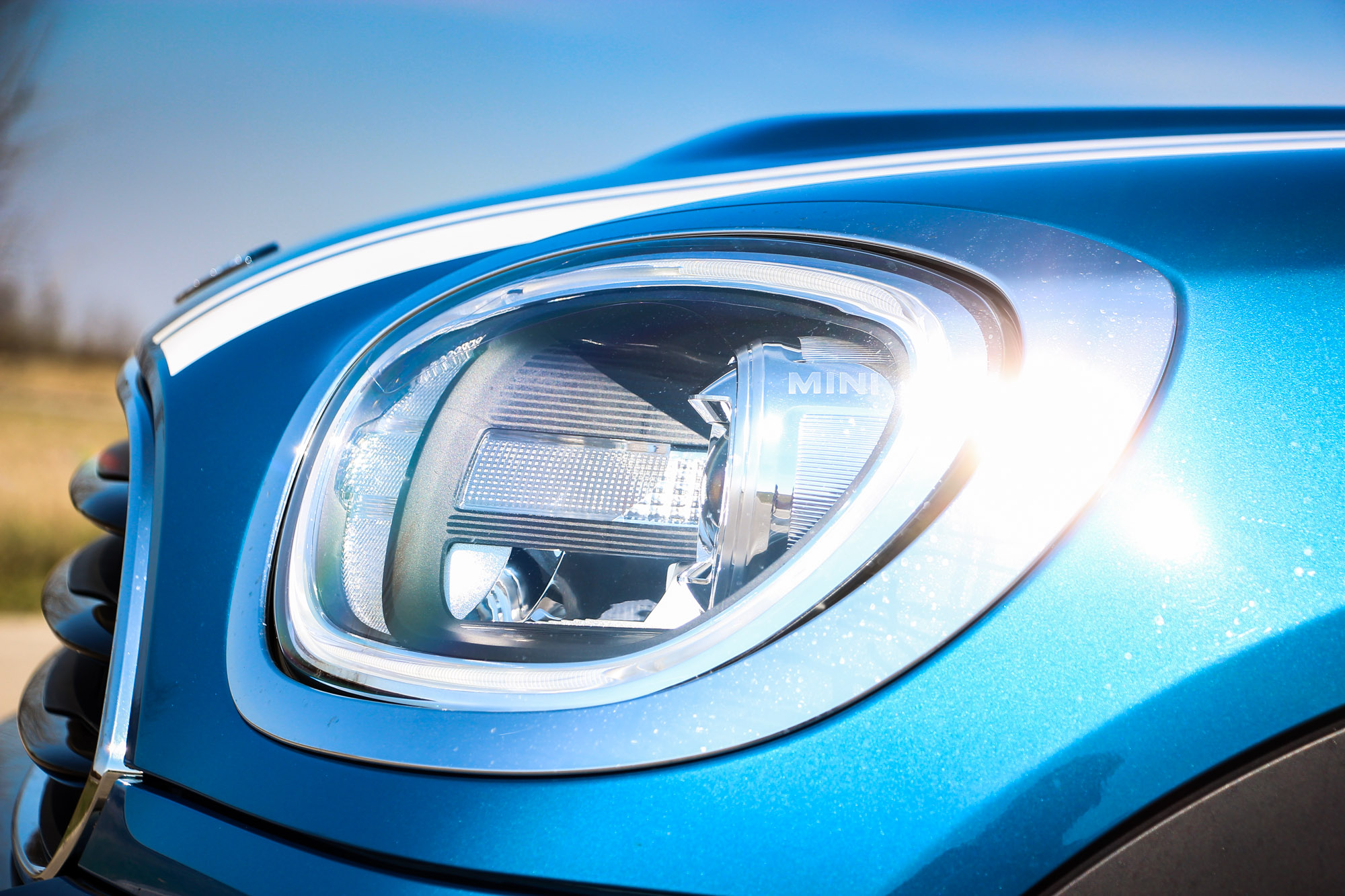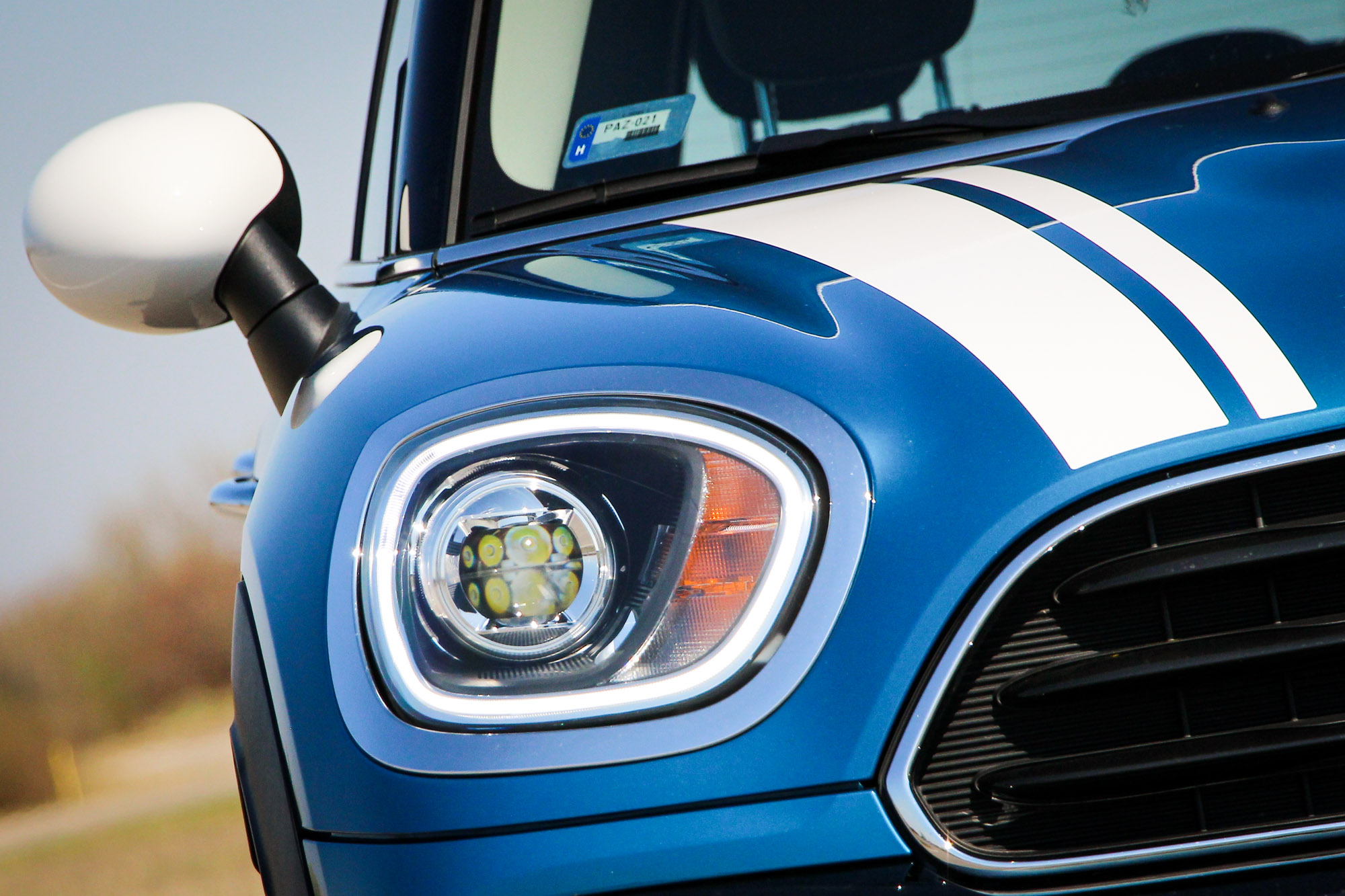 Nem kerek, mint a többi Mini fényszórója, de teljesen LED-es is lehet. A lakkfekete lökhárítókra nem lehet ésszerű magyarázat