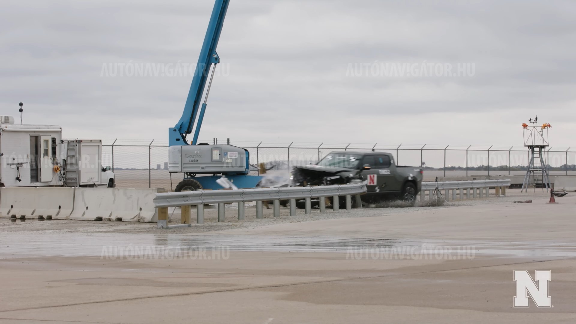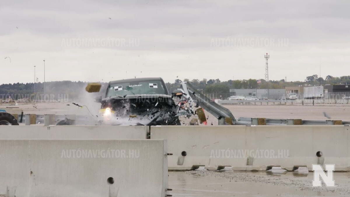 Bár az európai villanyautók üresen ennél azért könnyebbek, a nagyobb SUV modellek össztömege könnyedén túl tudja lépni az alábbi videóban látható jármű tömegét. Továbbá fontos megjegyezni, hogy a mi kontinensünkön a szalagkorlátokat is könnyebb járművekre tervezték, mint Amerikában.Teljesen hétköznapi helyzetet szimulált a kísérlet: egy autópályán történő balesetnél hasonló sebességgel és beesési szöggel lehet számolni (Fotó: Youtube.com/University of Nebraska–Lincoln)