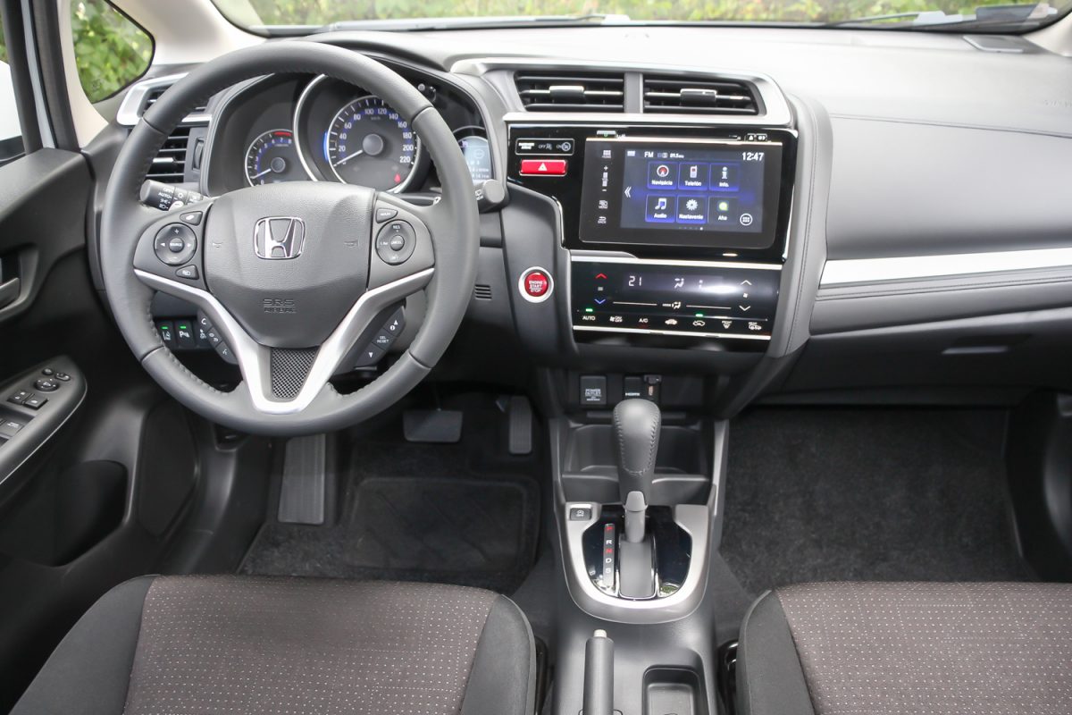 Kisautóhoz mérten jó a vezetői környezet. Lehetne szídni az androidos tabletet, ami a középkonzolon kapott helyet, de ebben a méretosztályban mind a szolgálatatásai, mind a kialakítás és a funkciók is jók. Örüljünk, hogy a Honda kezdi elhagyni a régebbi modellekben alkalmazott több kijelzős modellt. A fedélzeti számítógép azért itt is elég fapados, de minden lényeges infót megjelenít, és a kisautók között ez még így sem rossz. A klímavezérlés szerencsére külön panelt kapott, minden berendezés készre esik és hamar megszokható. Motorból - mint már írtuk - egyféle van, a 102 lóerős és 123 Nm nyomatékú 1.3-as benzines. Hogy menjen, pörgetni kell, de jobban áll neki a takarékoskodás. Főleg a mindhárom felszereltségi szinten, 300 ezer forint felárért elérhető CVT automataváltóval.