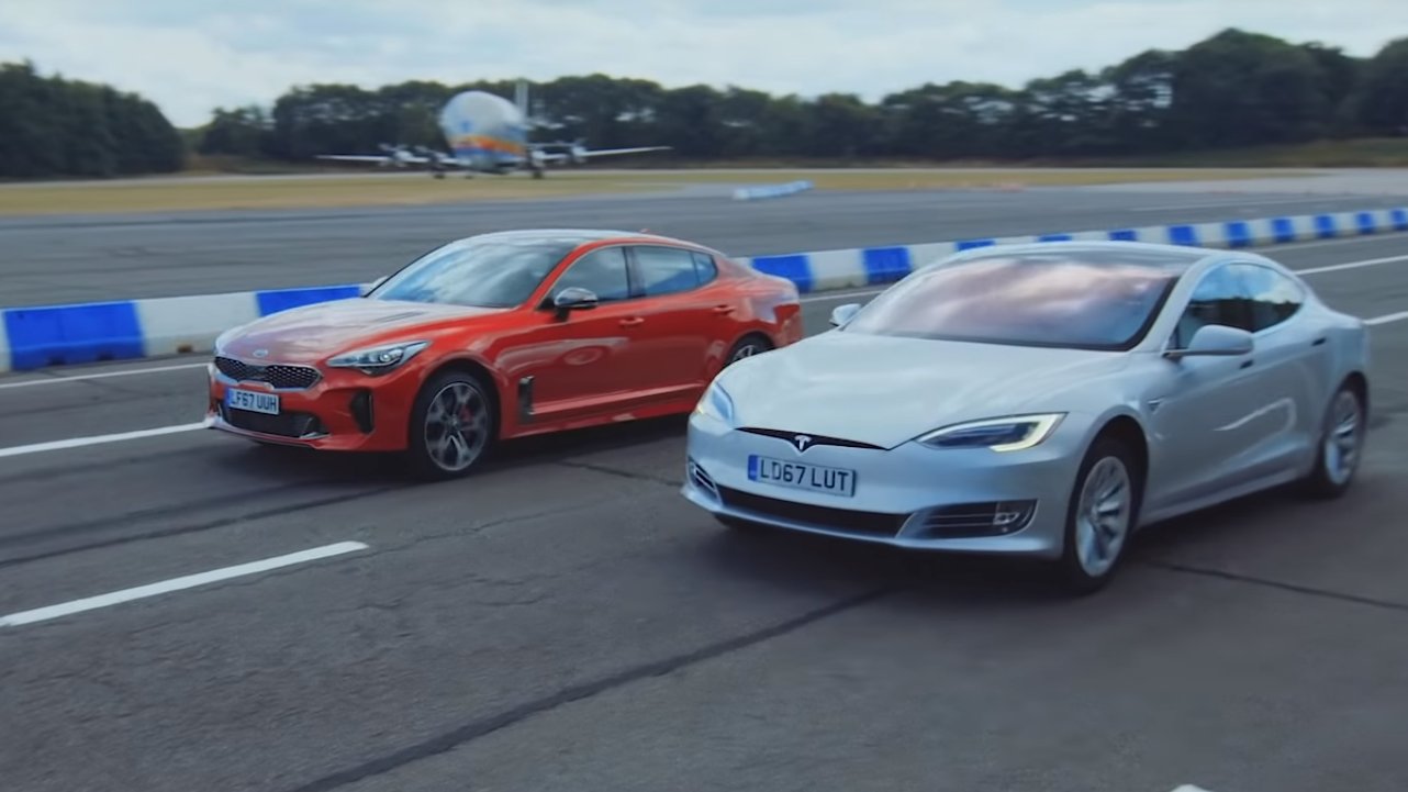 Nem nehéz megtippelni, ki lesz a győztes egy gyorsulási versenyben, ha az egyik fél egy Teslával indul. A sorozatgyártású villanyautó teljesítménye lehengerlő, de nem szabad elfelejteni, hogy túl sokszor nemigazán képes megtenni egymás után. A legtöbb ilyen videón a csúcsfelszerelt kétmotoros P100D-t láthatjuk gyorsulni, ám ez a legteteje. De mire képes egy alapkivitel, a 75 kilowattos akkumulátorral? A Top Gear most rajtvonalhoz állított egy szintén kétmotoros, de 75 kilowattos Tesla Model S-t, vagyis egy 75D-t, valamint egy hasonló súlycsoportú, de hagyományos belsőégésű benzinmotoros kihívót egy Kia Stinger GT S személyében.