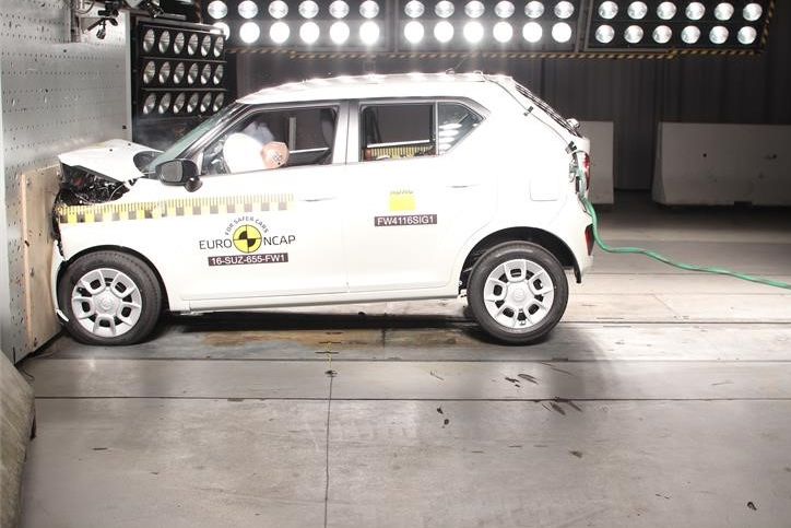 Az új Suzuki Ignis frontális ütköztetésen. Biztonsági csomagja nélkül az Ignis csak három csillagot érdemelt, vele viszont megszerezte mind az ötöt