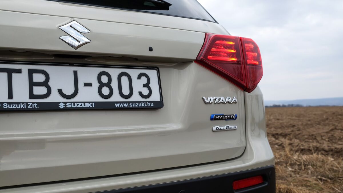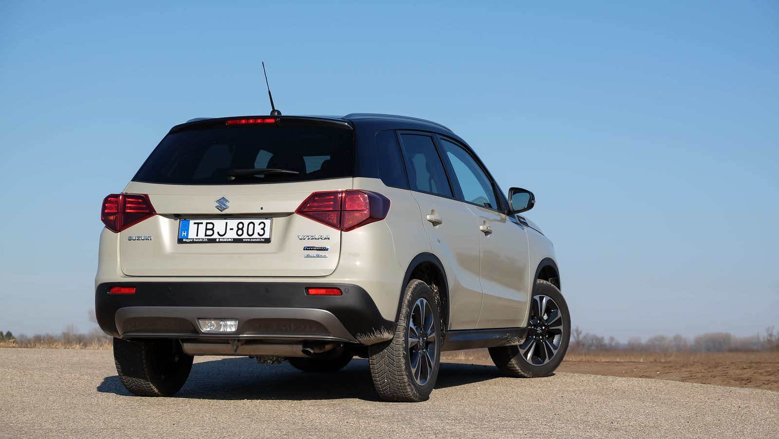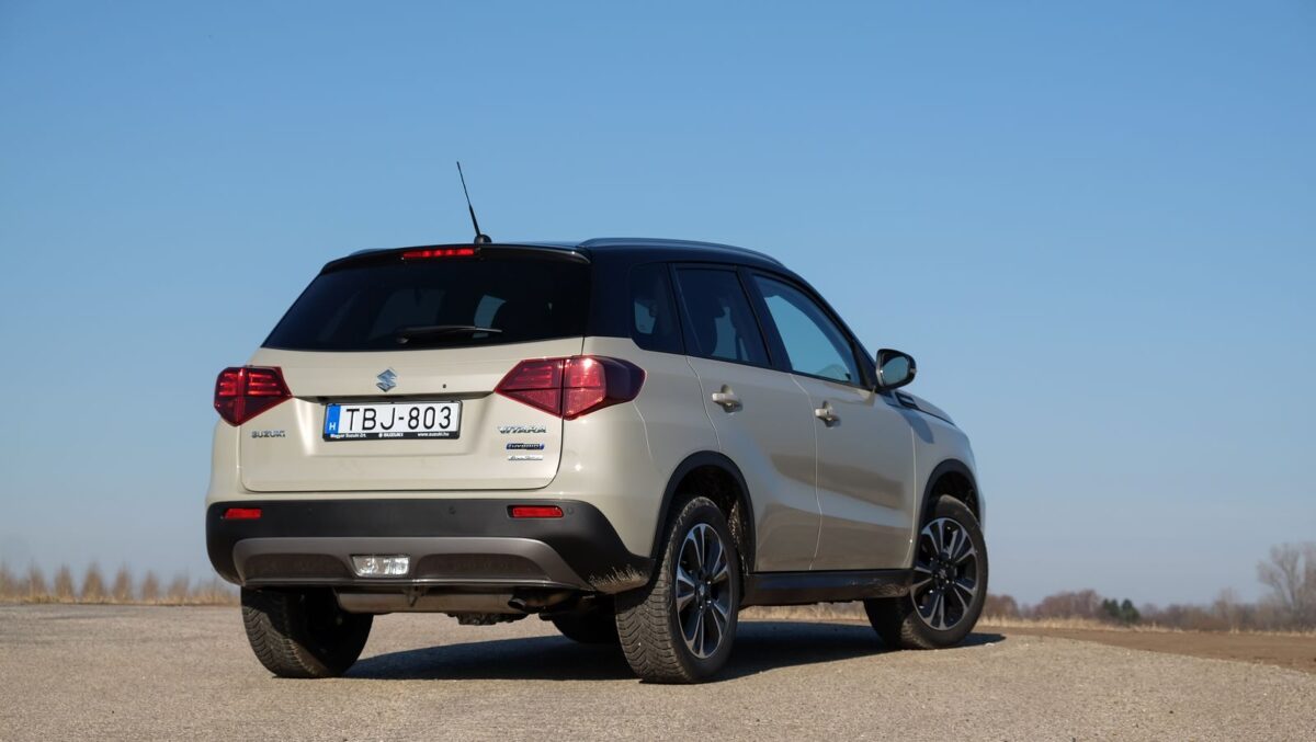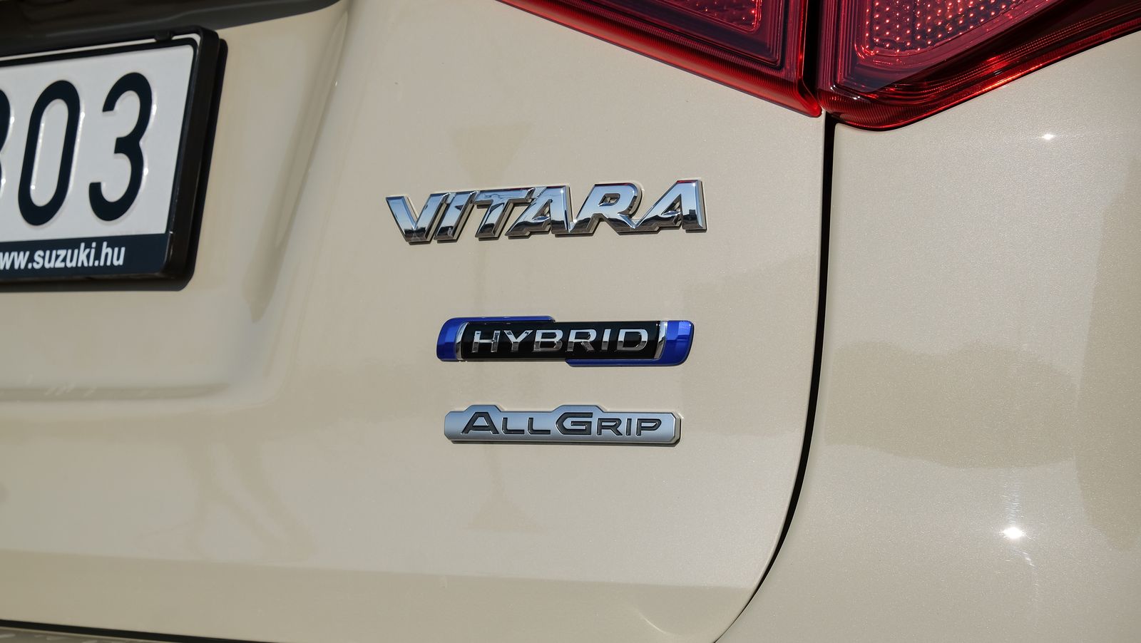 A forma lényegében változatlan, egyedül a Hybrid felirat háttere változott hátul. A nem egész 4,2 méteres Vitara városban is jól használható, de egész tágas utasteret ad