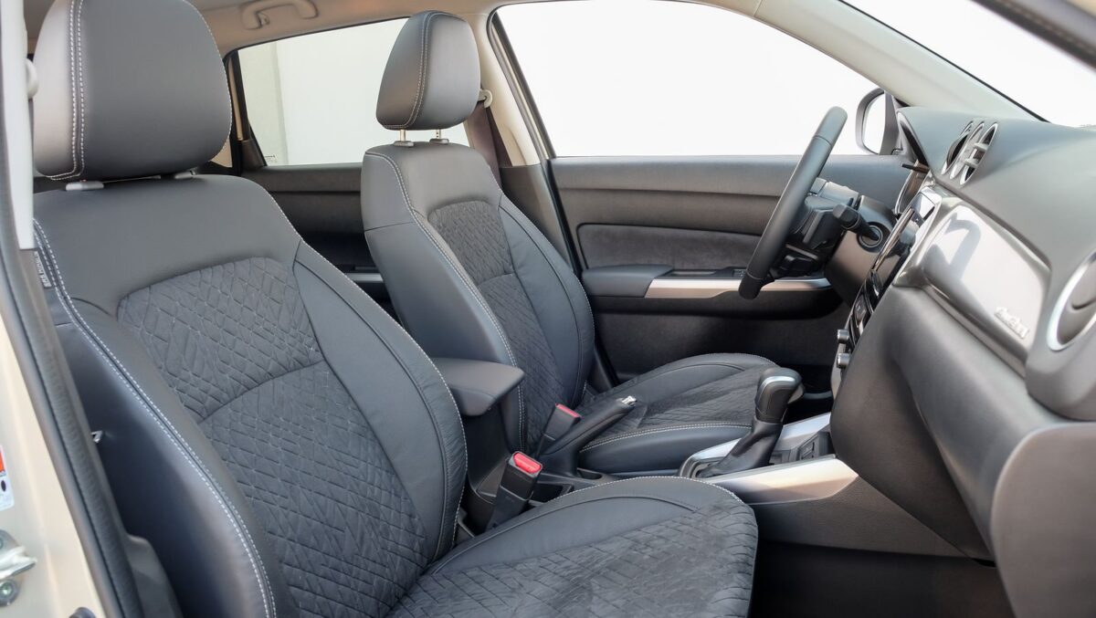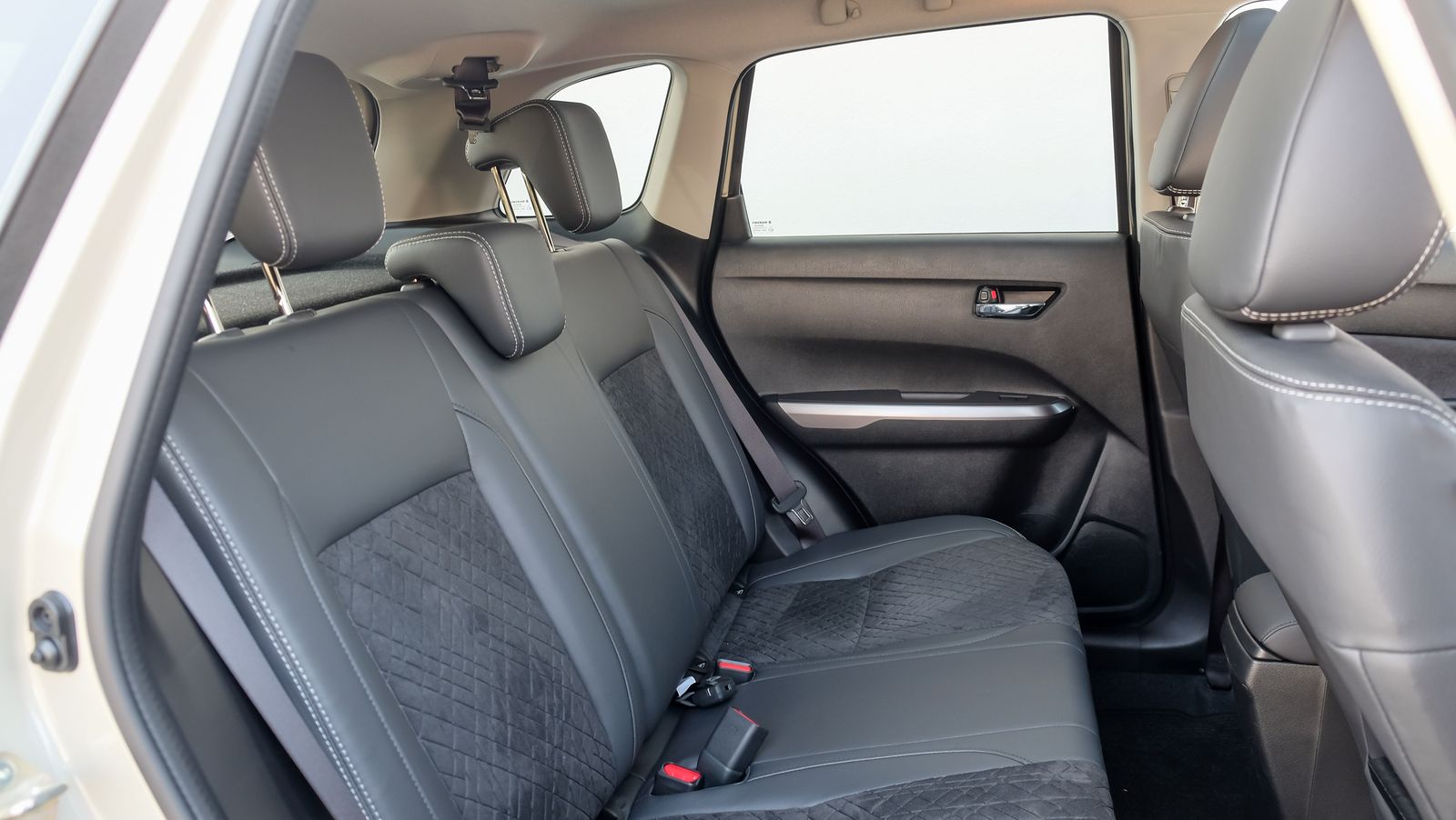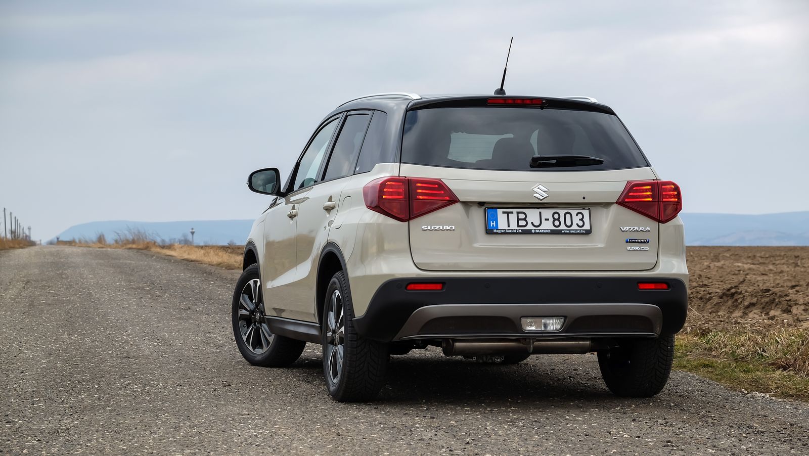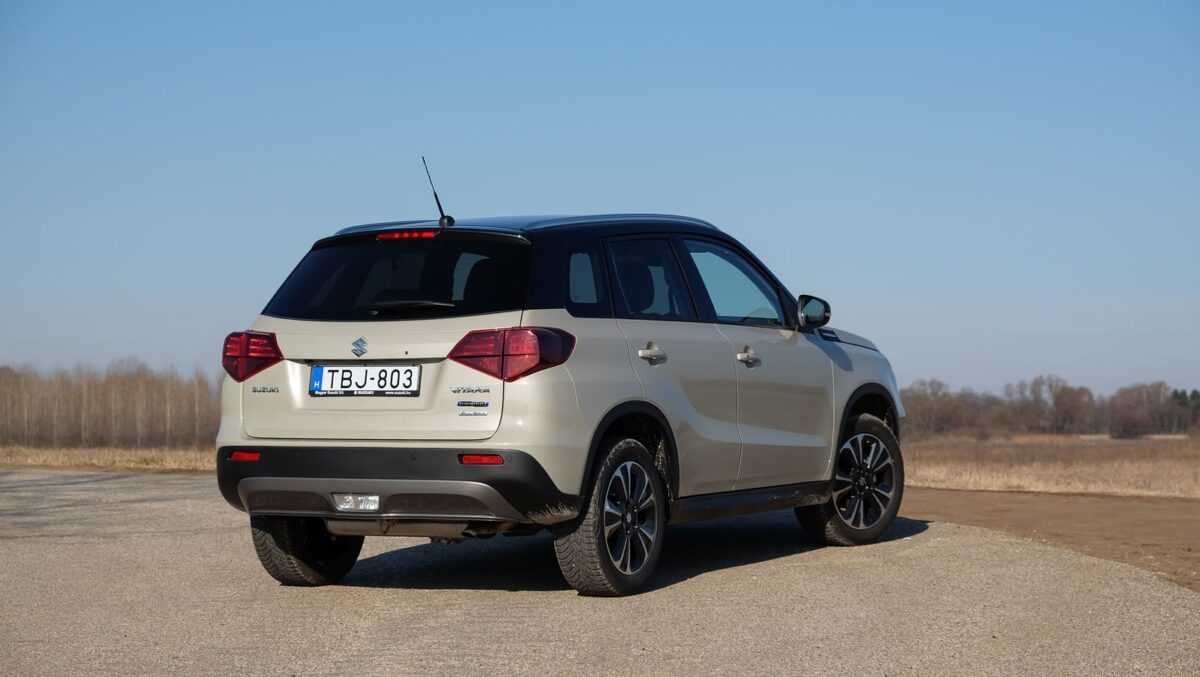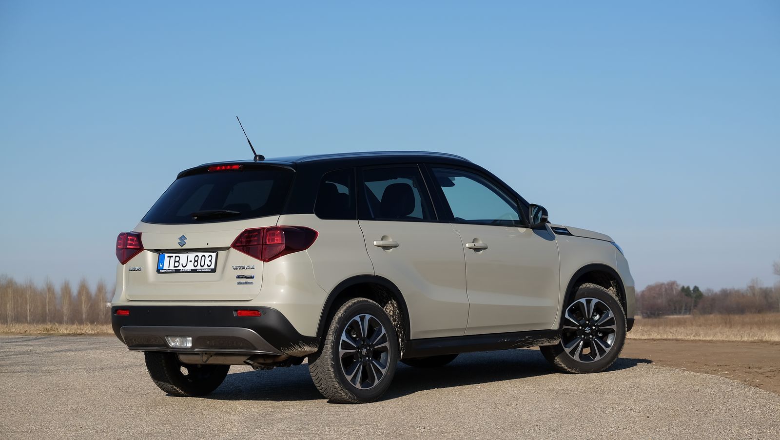 A forma lényegében változatlan, egyedül a Hybrid felirat háttere változott hátul. A nem egész 4,2 méteres Vitara városban is jól használható, de egész tágas utasteret ad