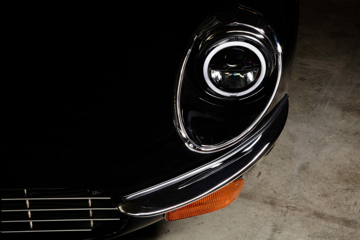 A Jaguar legszembetűnőbb változása a LED világítás, ami nyilvánvalóan túlszárnyalja a hatvanas években készült lámpa fényerejét. Az ízléses utastérbe Bluetooth és komoly audiorendszer is került, szerencsére a tervezők nem csábultak el, így érintőképernyőtől mentes a klasszikus Jaguar. A futómű is felzárkózott a 21. századhoz, állítható lengéscsillapító növeli a komfortot, a megállásért négydugattyús tárcsafékek felelnek, a szilentek poliuretánból készültek. Hiába cserélték le a motort, az eredeti V12-es embléma továbbra sem állít valótlanságot. A gyári 5,3 literes (272 LE) blokk helyét egy 6,1 literes (400 LE) V12-es vette át.