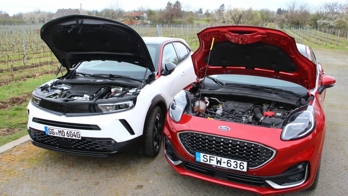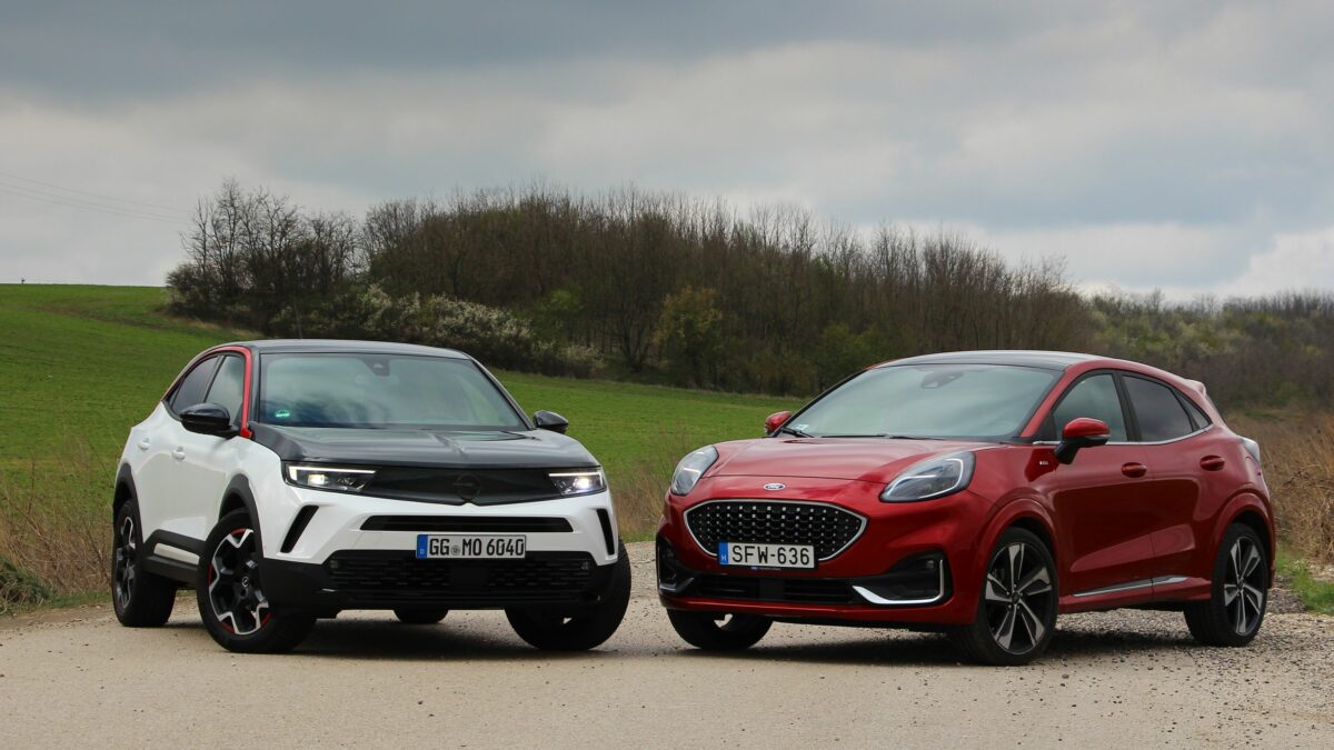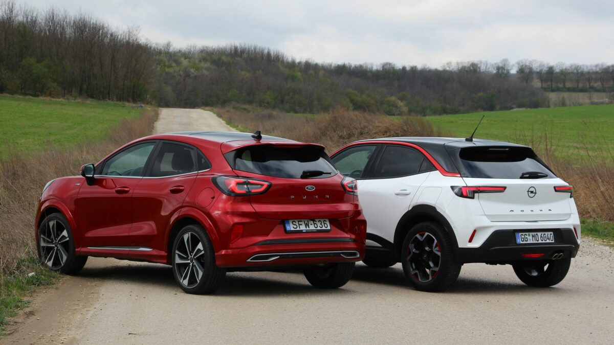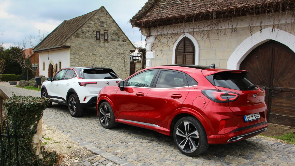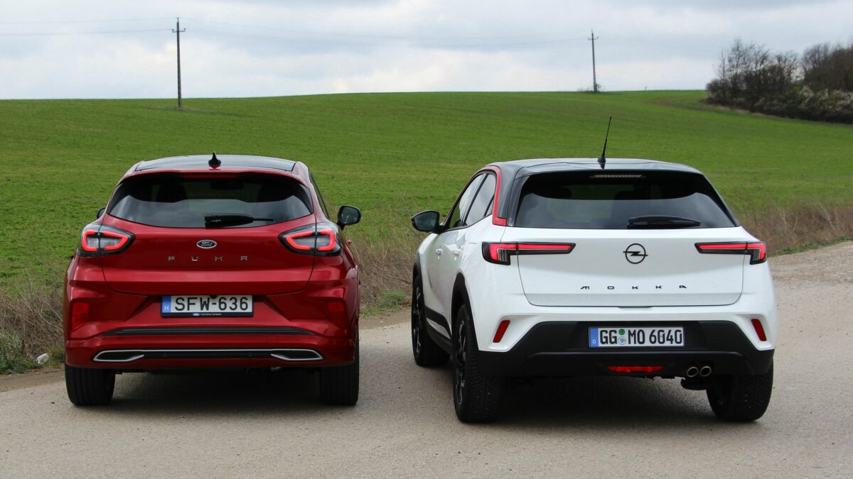 Orrában mind a két autó háromhengeres, turbós benzinmotort hord. Annyi különbséggel, hogy az Opelben 1,2 literes, a Fordban pedig egyliteres az egység. Előbbi 130, utóbbi pedig 125 lóerős, ez a differencia valójában észrevétlen, viszont a sebességváltók közötti különbség már nem. Automata mind a kettő, ám a Mokkában 8 fokozatú és bolygóműves, a Pumában pedig 7 fokozatú és duplakuplungos. A Puma szerkezete szereti elpörgetni magasabb fordulatszámtartományokba a motort, főleg Sport módban. Ami nem is csoda, hiszen a teljesítménycsúcs 6000-nél van. Persze a 200 Nm maximális nyomaték már 1400-tól rendelkezésre áll. Az Opel esetében 5500-as fordulatnál van meg mind a 130 ló, a 230 Nm nyomaték pedig 1750-től, de érzésre sokkal okosabban kapcsolgat a Mokka váltója. Emellett jobba hangszigetelése is és kevesebb rezonancia jut el az utastérbe a háromhengeres motortól.