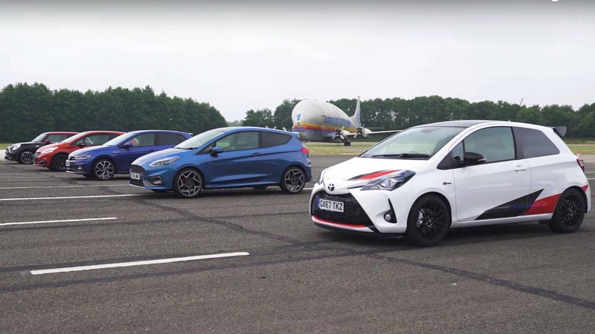 A Carwow állította egymás mellé a piac legerősebb kisautóit, mint a Toyota Yaris GRMN, a Ford Fiesta ST, a Volkswagen Polo, GTI, a Peugeot 208 GTi és a Mini Cooper JCW. Legutóbbi a legerősebb 231 lóerős motorjával, de a legnehezebb is, mégis csak a második helyre volt elég. A Polo GTI az egyetlen automata váltós a sorban, ám csak hátul végzett, mivel a rajtot egyik autó sem kapta el úgy, mint a 400 európai példányban készülő japán versenyző.