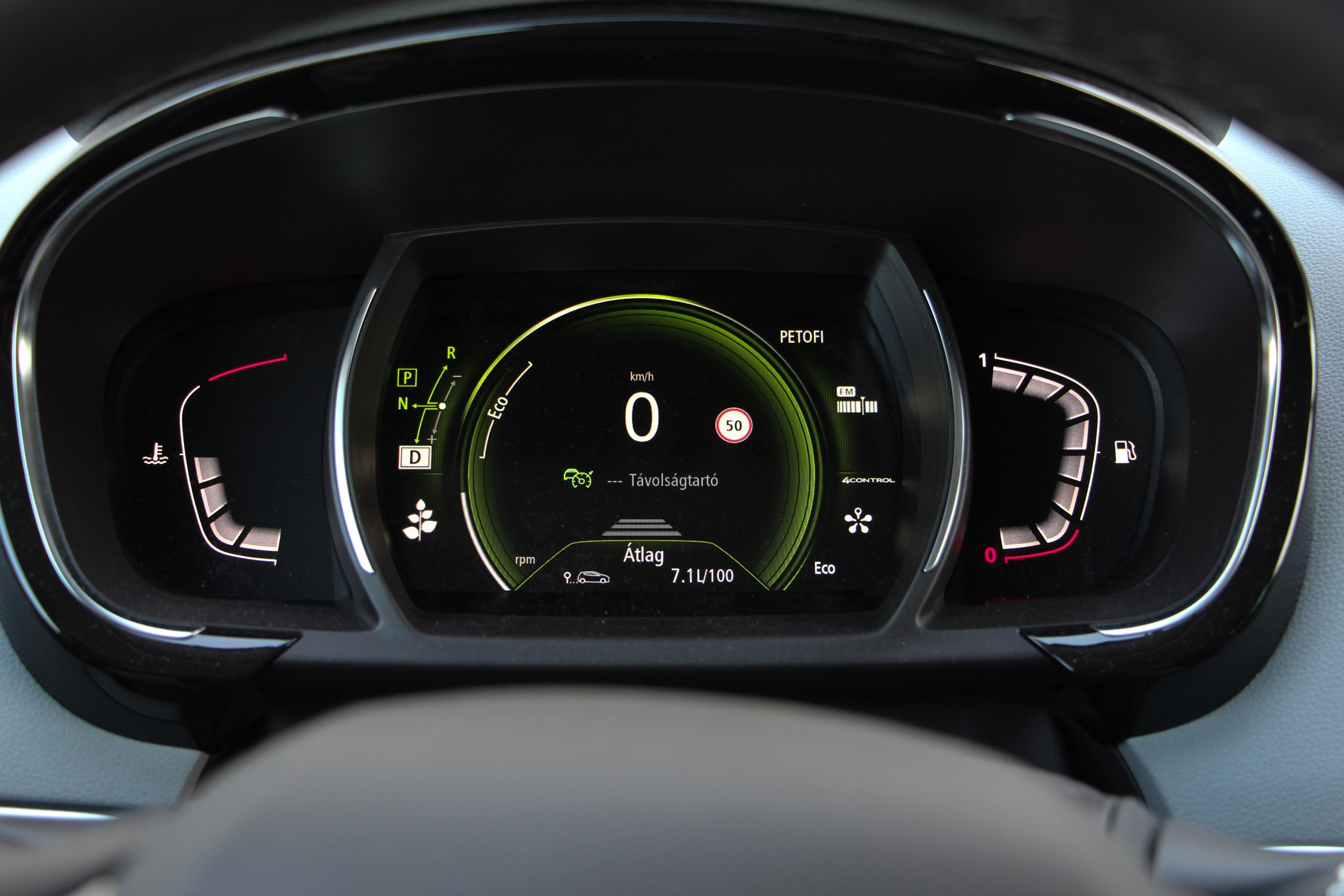 Mit tud a Zen? Alapból kerek 11 millió forintért, már bőr-szövet kárpitozású, tempomatos, kétzónás légkondicionálós, a hátsó ajtókon árnyékolórolós, 35 európai ország térképét ismerő navigációs rendszeres és tolatókamerát is adó érintőképernyős középkonzolos, Arkamys hifis és persze Bluetooth kihangosítós. Viszont ehhez a tesztautó esetén még 1,9 millió forintnyi extrát pakoltak a rendeléskor. Lehet tehát játszani a konfiguráláskor, 200 ezer forint az elektromos csomagtérajtót és parkolóasszisztenst adó City csomag, ugyanennyi a szuper finoman dolgozó, ám csak 40-140 km/órás tempó között dolgozó adaptív tempomatot, head-up displayt, valamint aktív vészfékezőrendszert és ráfutásveszélyre figyelmeztetést is adó Vezetés csomagé. Egységesen 150 ezer forint a Téli csomag (fűtőszálas szélvédő és első-hátsó szélső ülések), valamint a Visio csomag (automata fényszóróvezérlés, sávelhagyásra figyelmeztetés és táblafelismerés) ára. Combosabb tétel a már említett 4Control csomag a 19 colos alufelnikkel, értük 500 000 forintot kell fizetni. A hatodik, hetedik ülés 300 000 forint, a háromzónás klíma 150 000, a hővédő üvegezés 50 000, az pedig már nem újdonság, hogy a Bose hifi 200 000 forint. Még ezzel, a szinte "mindent bele" verzióval is jóval a csúcs Initiale Paris szint (dízel esetén) 13 millió forintos listaára alatt járunk, s látszik, hogy 12 millió környékén már elég jó dízel Espace-t kaphatunk. Ez sem kevés pénz persze, ám a hasonló méretű és ellátmányú autók körében sajnos átlagos, a Renault pedig még alapáras, erős fényű LED fényszórót, extravagáns megjelenést, illetve 5 év/150 000 kilométeres garanciát is ad, ami bizony nem mindennapi. Így aztán csomagként néhány hibájával is jó az Espace, ami mindenképp a legizgalmasabb és nem is rossz nagyméretű egyterű crossover.